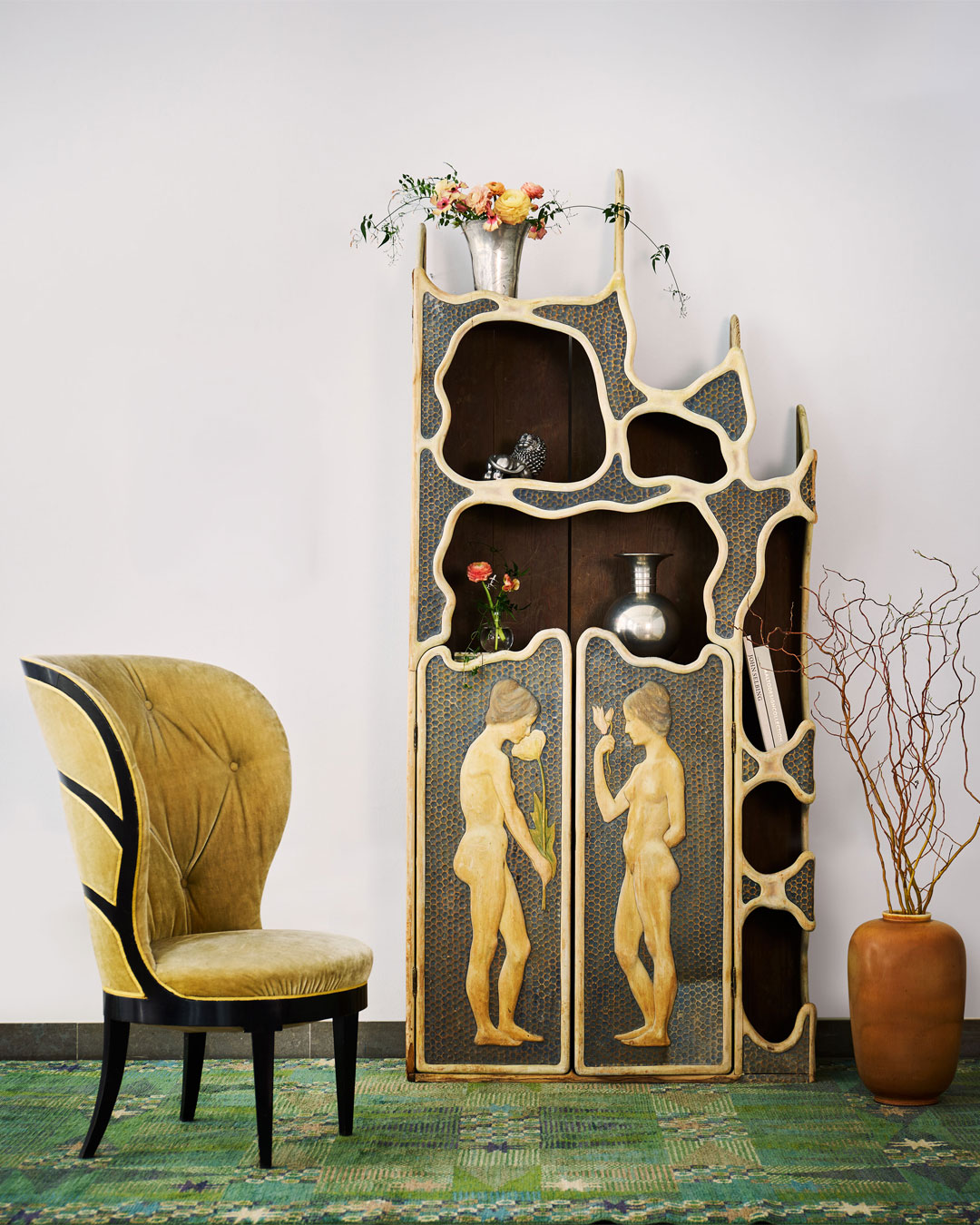This season’s auction features an exceptional highlight in the form of a central work by Diego Giacometti – an oeuvre where the boundary between sculpture and function is constantly explored and redefined. Other highlights include a monumental, richly decorated cabinet by Valentin Kielland, Norway, 1902.