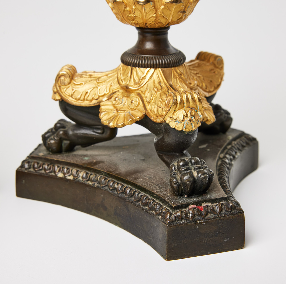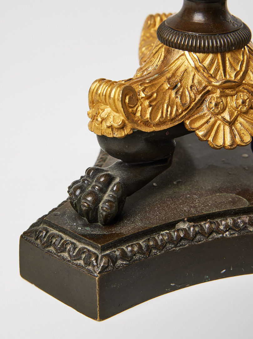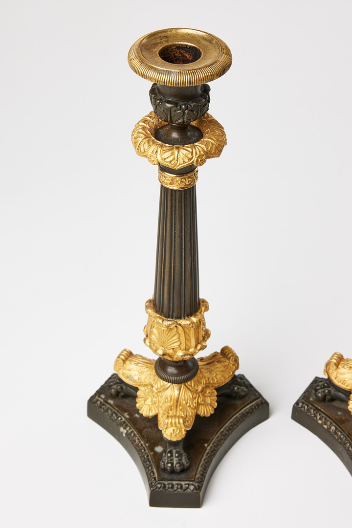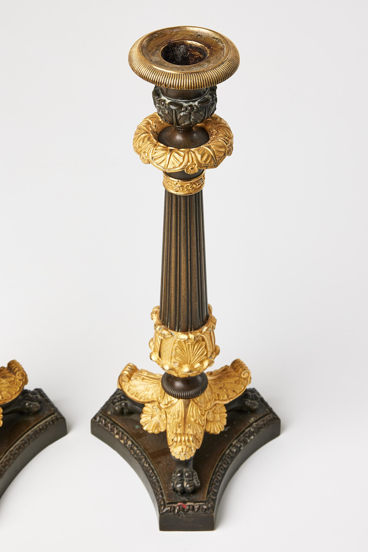 LJUSSTAKAR, ett par, Louis-Philippe, Frankrike 1800-talets andra kvartal, matterad och polerad brännförgyld och mörkpatinerad brons.