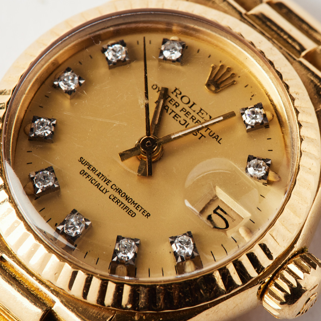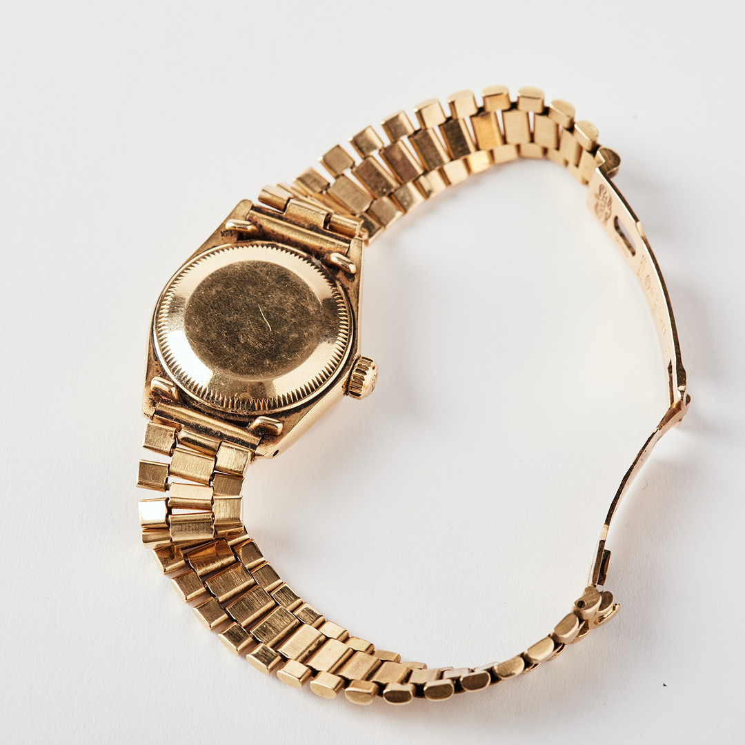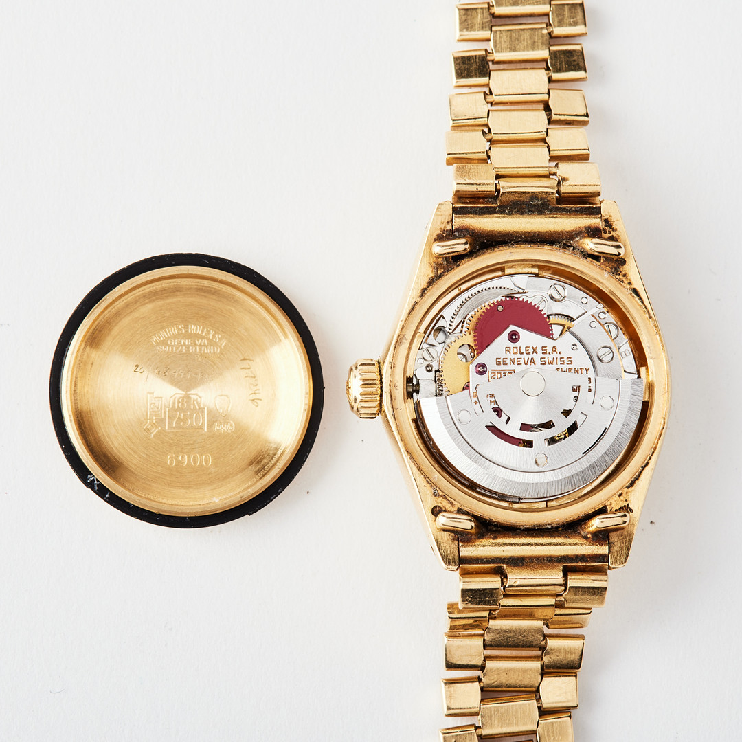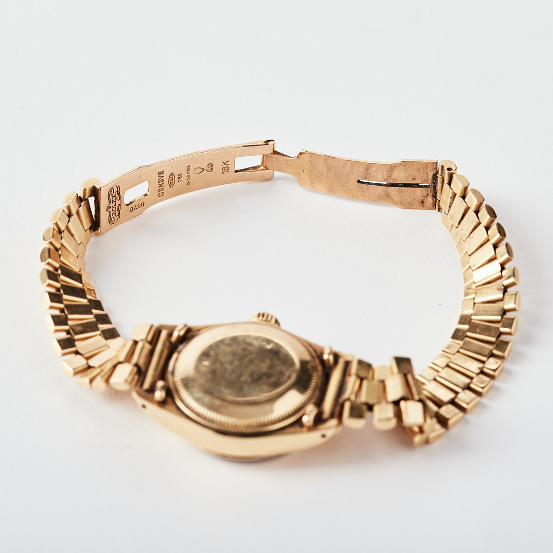 ROLEX, Oyster Perpetual, Datejust, Chronometer, wristwatch, 26 mm, 18K gold, circa 1980.