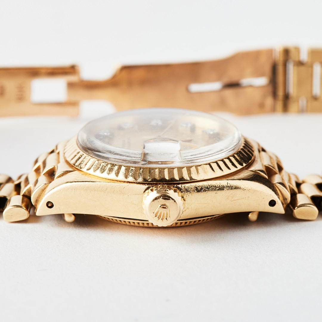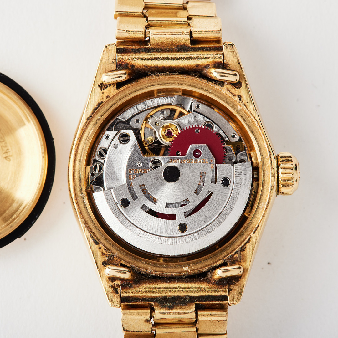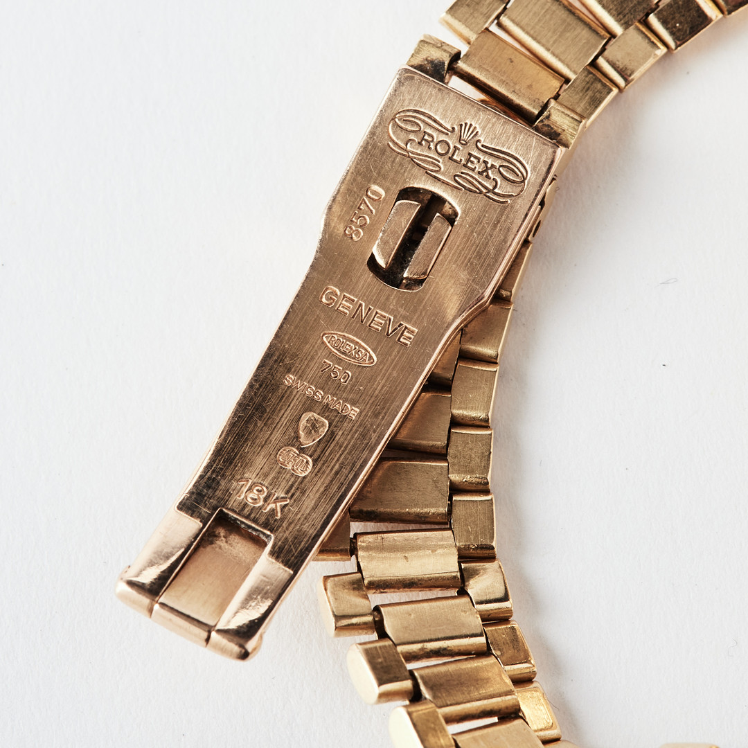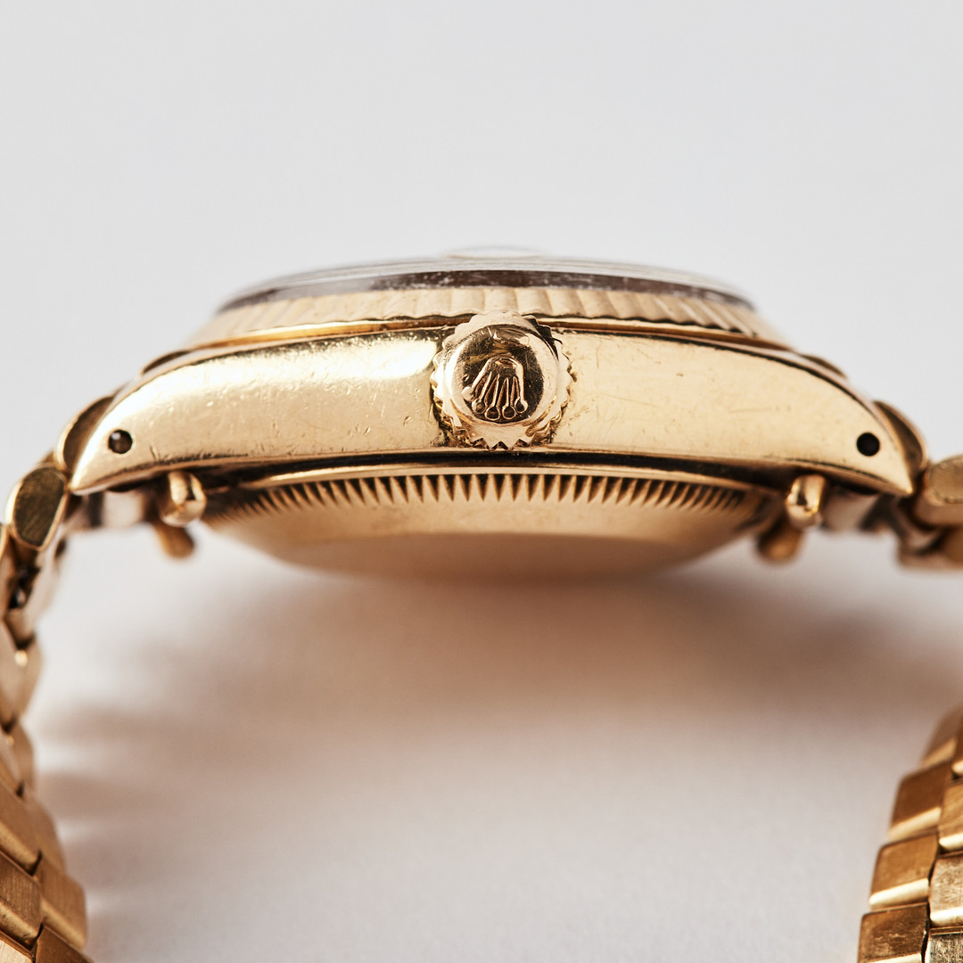 ROLEX, Oyster Perpetual, Datejust, Chronometer, wristwatch, 26 mm, 18K gold, circa 1980.