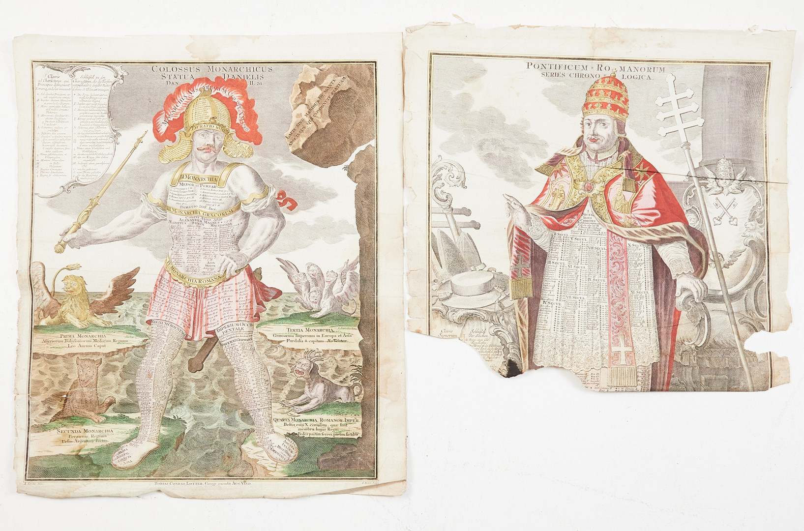 COLOSSUS MONARCHICUS STATUA DANIELIS m.fl. 4 st, gravyrer, LOTTER ca 1760.