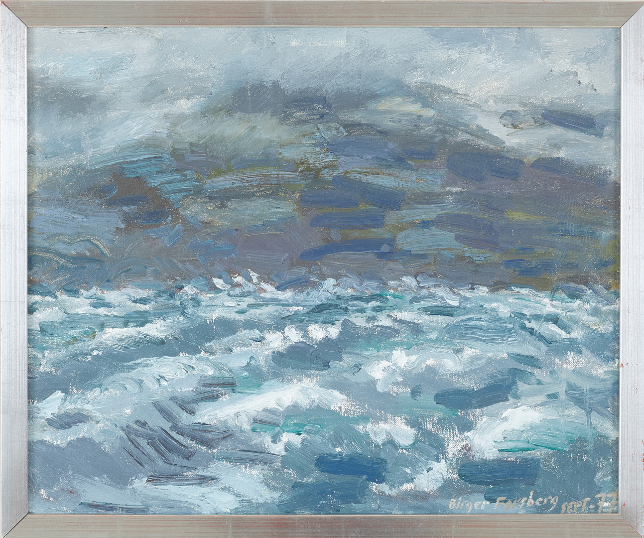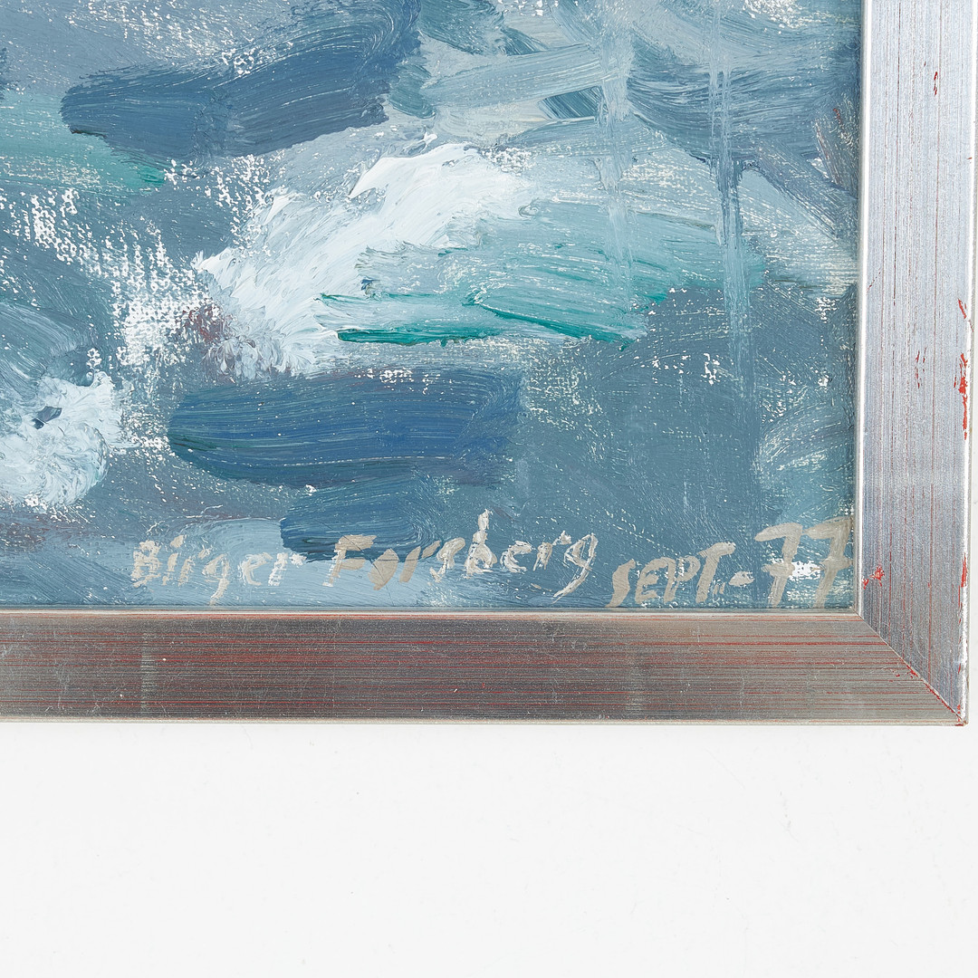 BIRGER FORSBERG (1922-2012). "På Håkon Jarl, Hurtigrutten Sept -77", olja duk på pannå, signerad och daterad.