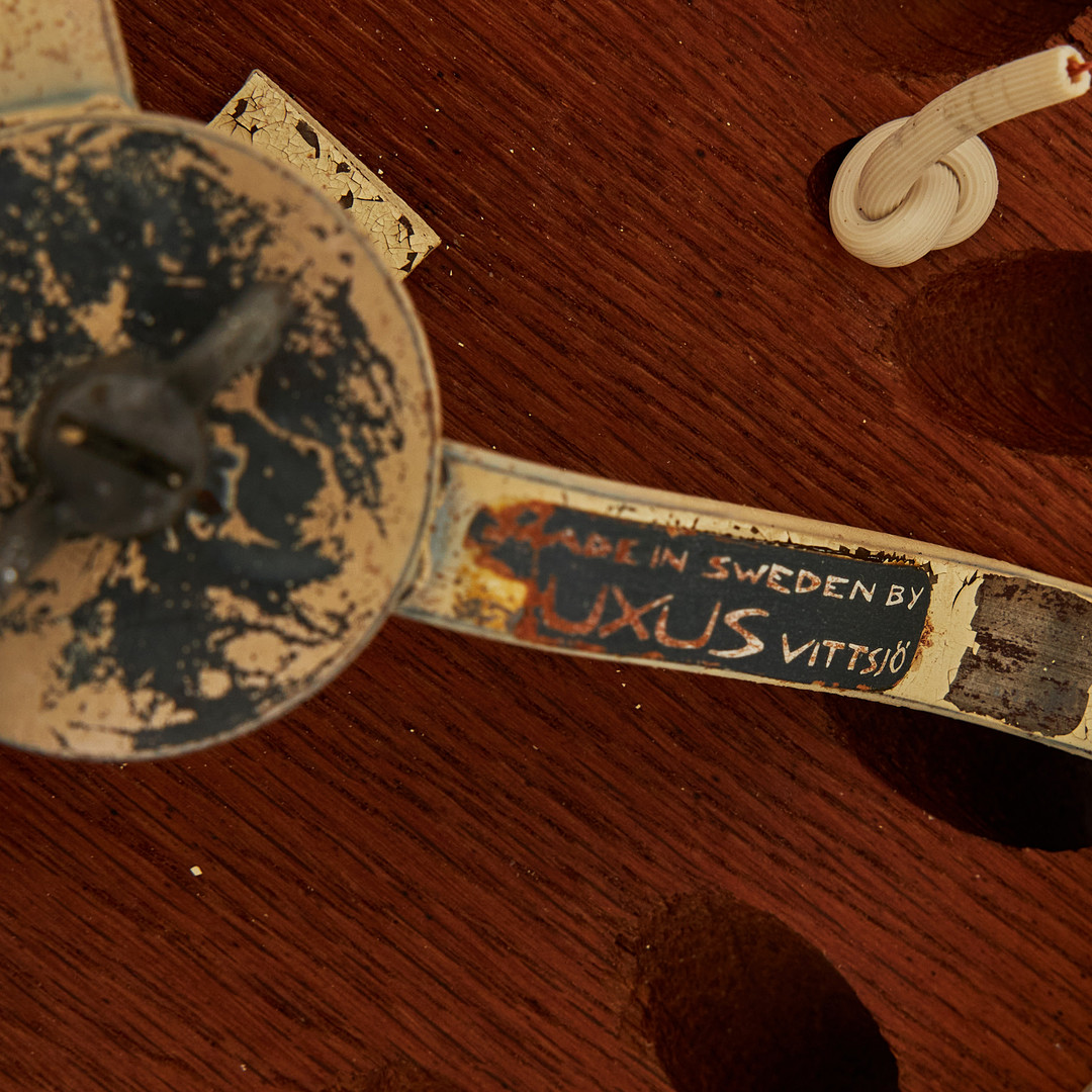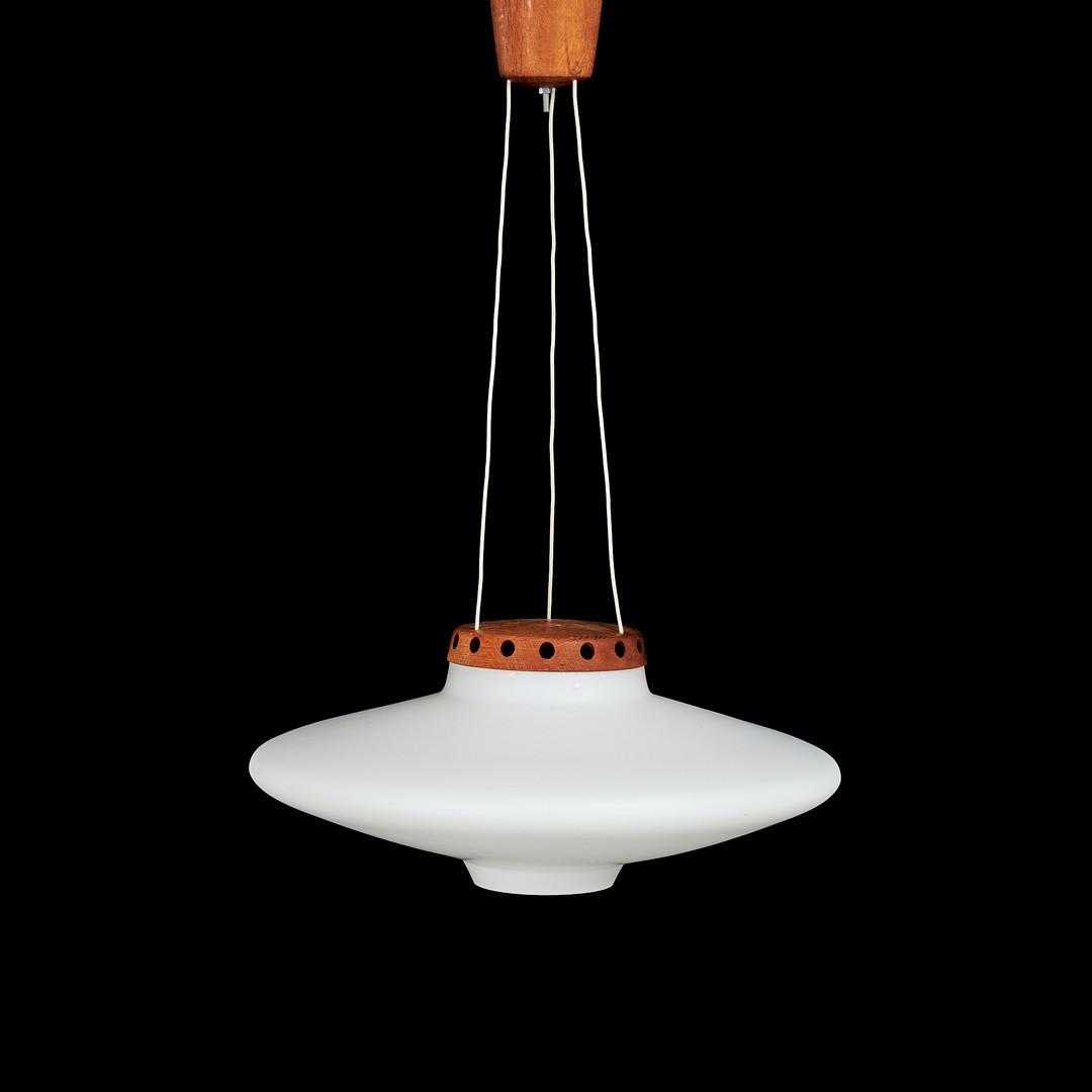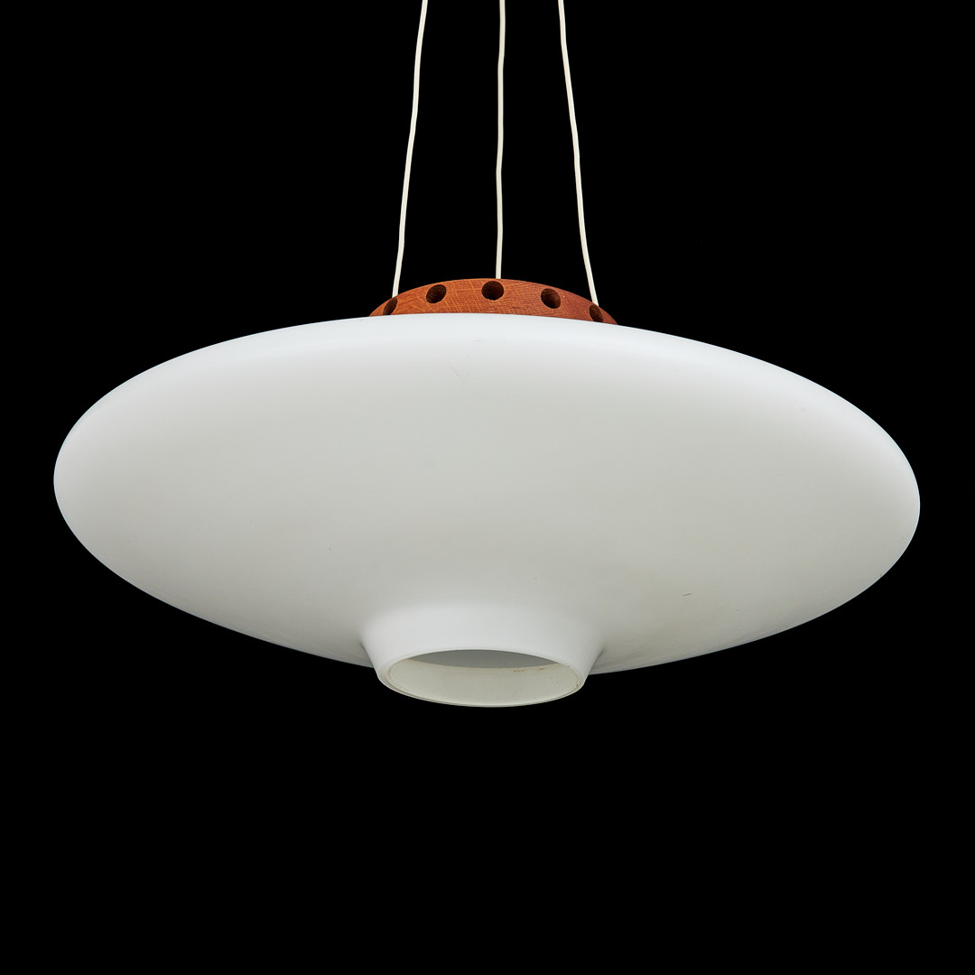 UNO & ÖSTEN KRISTIANSSON. Taklampa, "UFO", Luxus, Vittsjö, glas, upphängnin samt takkopp i ek.