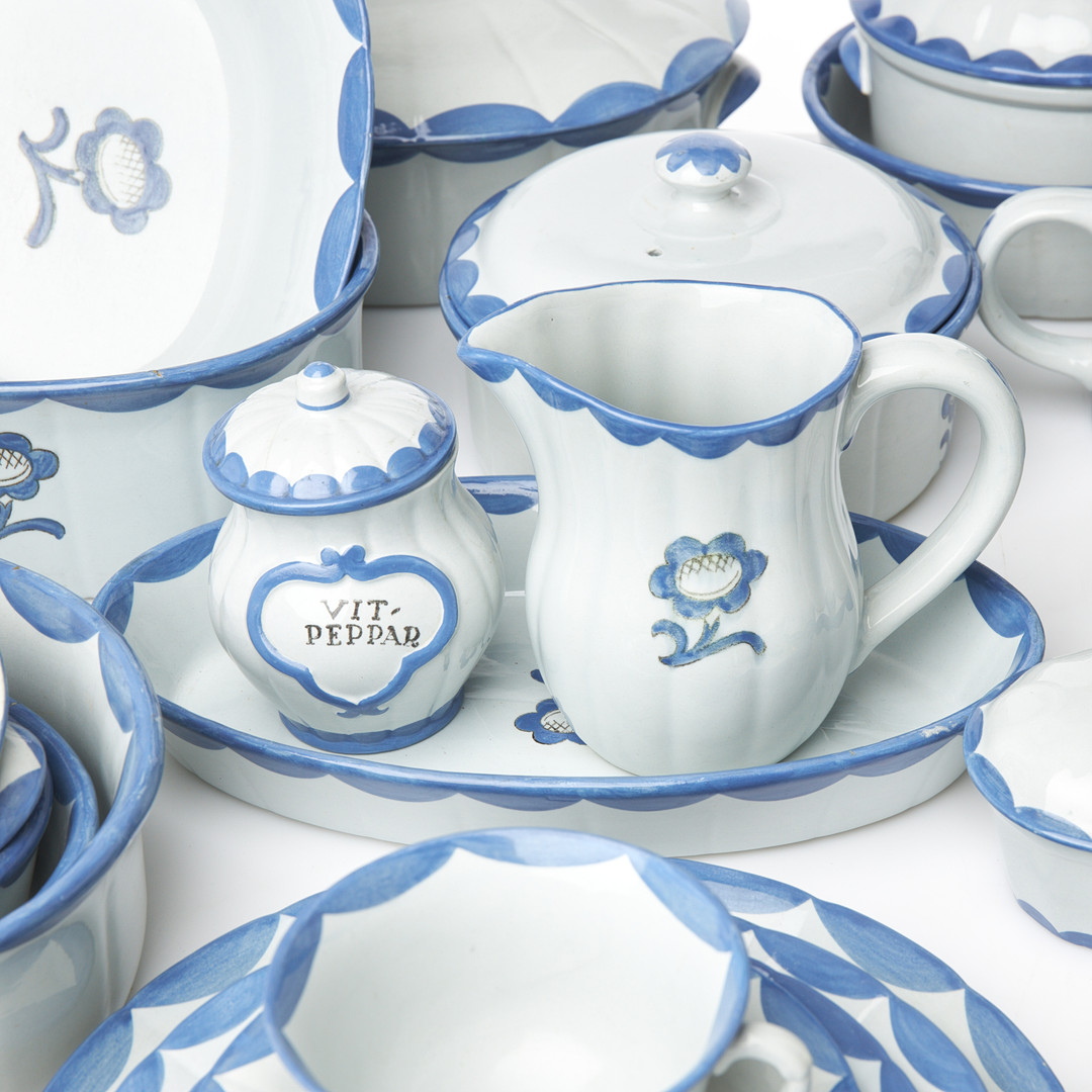 WILHELM KÅGE. Servisdelar, "Blå Pyro", porslin, Gustavsberg.