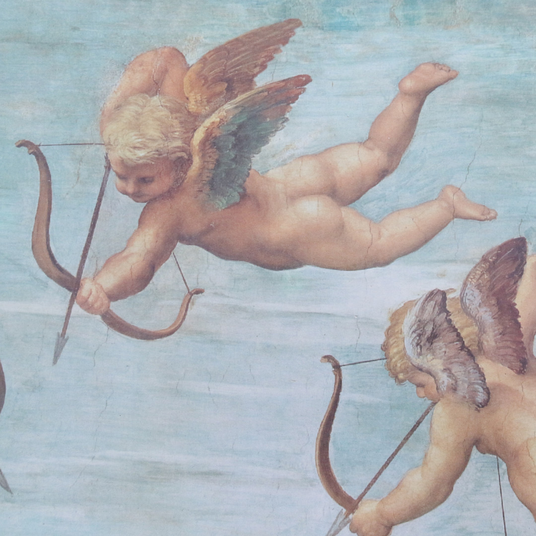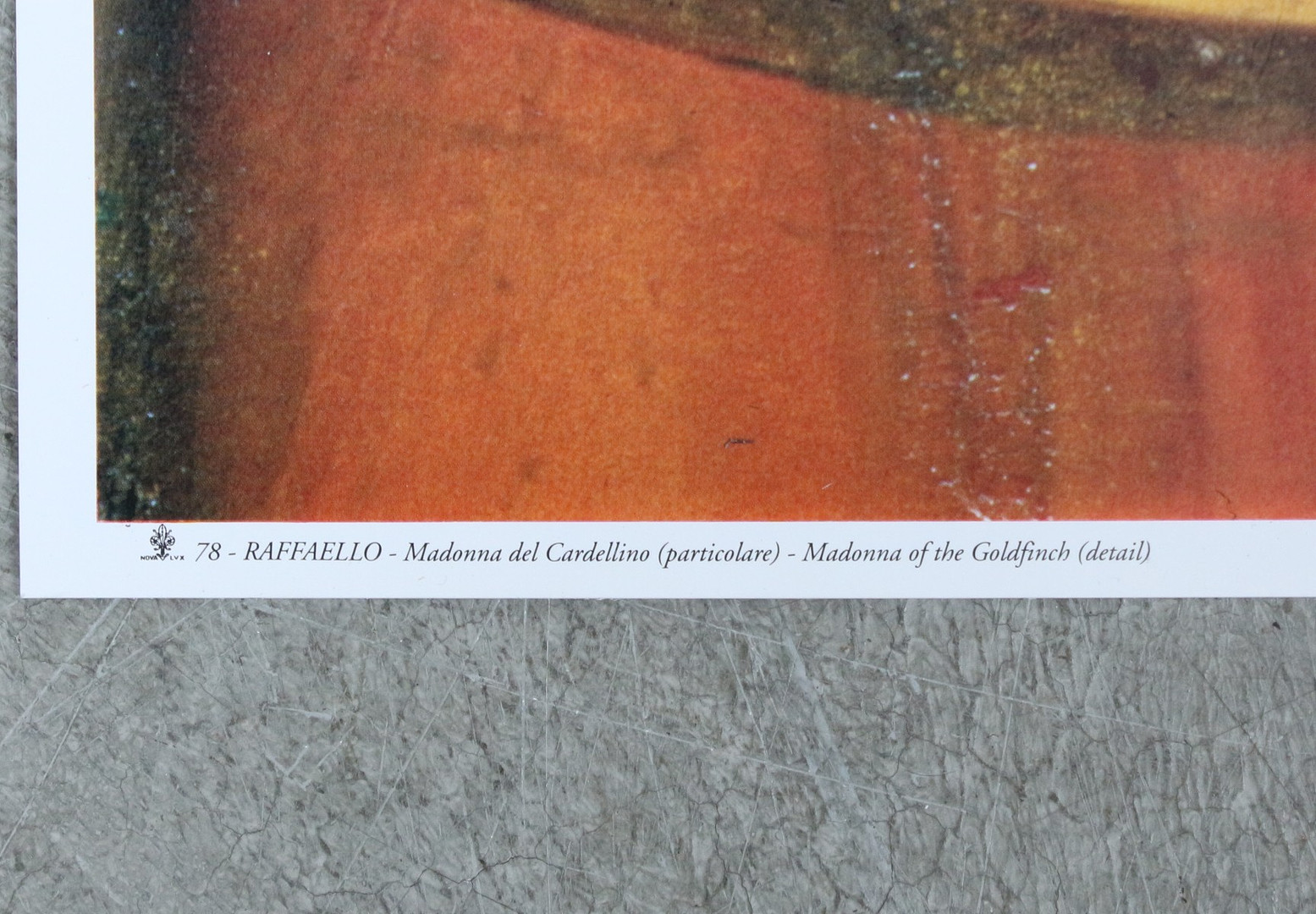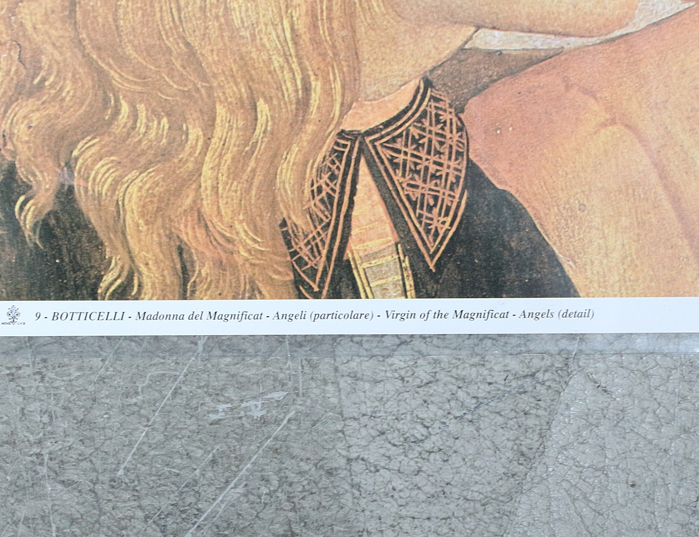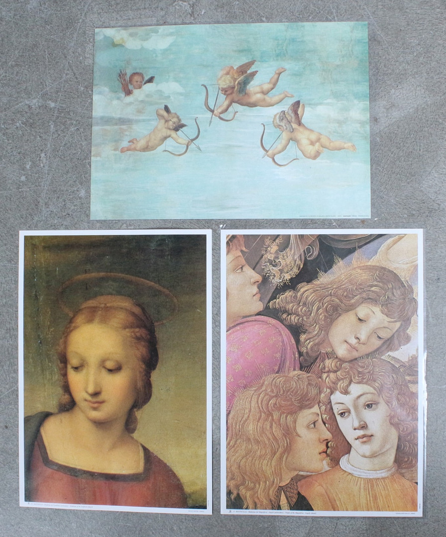 3 Kunstdrucke nach RAFFAELLO 'Il Trionfo di Galatea' und 'Madonna del Cardellino' sowie BOTTICELLI 'Madonna del Magnificat - Angeli (particolare)'.