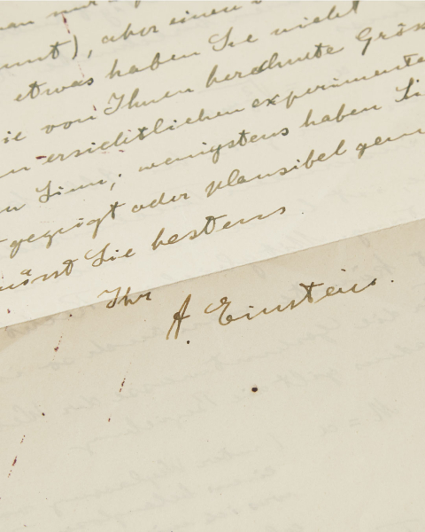 The Einstein letters — offered across seven lots — provide a rare insight into the development of field theory and shed light on Chaim Herman Müntz’s central role in Einstein’s mathematical reasoning during the years following 1927.