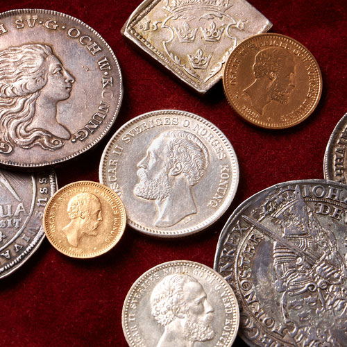 A silver coin from 1631 is among the highlights of the theme, as is a riksdaler bearing the portrait of Karl XIV Johan. Alongside these, a further 30 coins are on offer in a theme spanning almost four centuries.