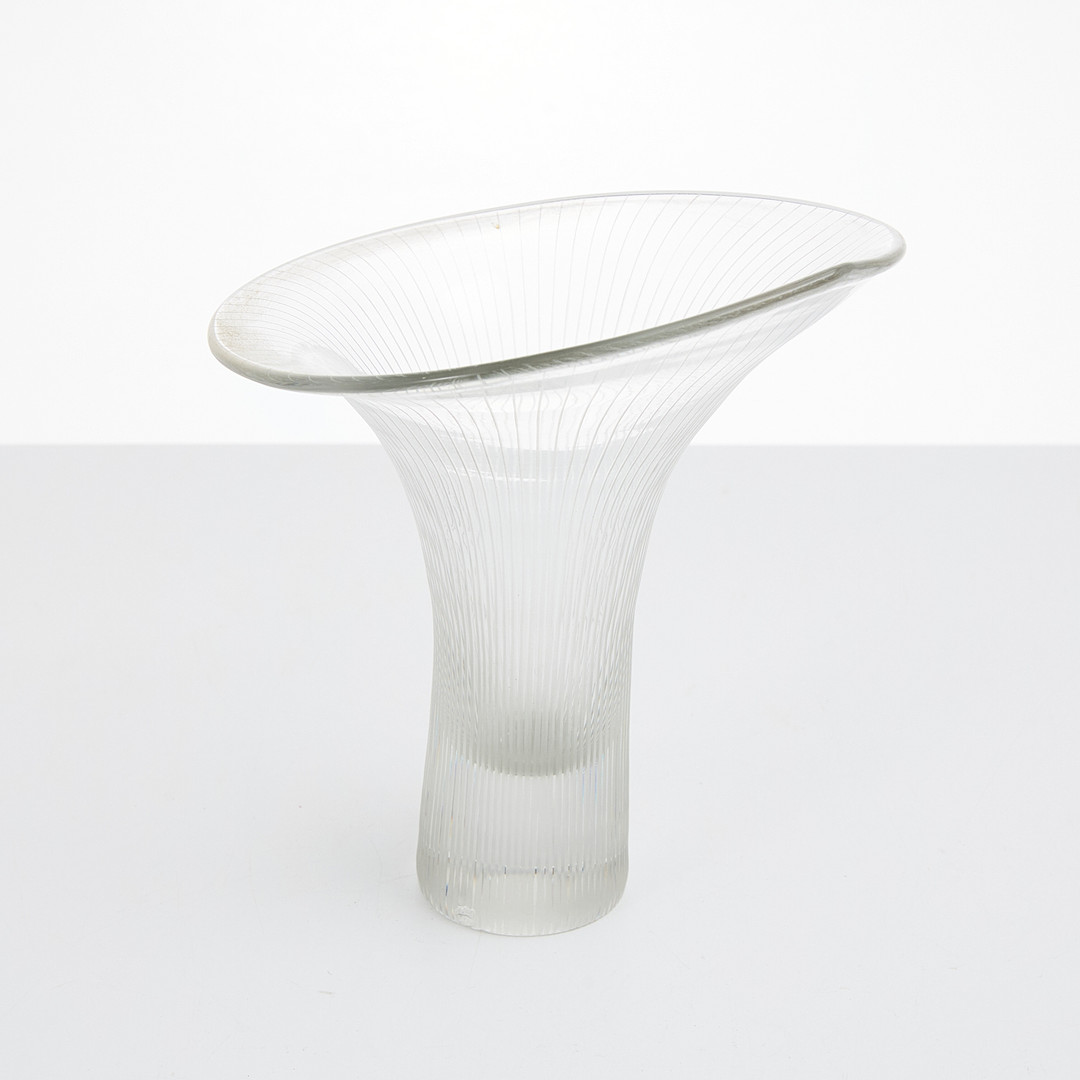 TAPIO WIRKKALA. "Kantarell", vas, signerad Tapio Wirkkala Iittala, linjeslipat glas.