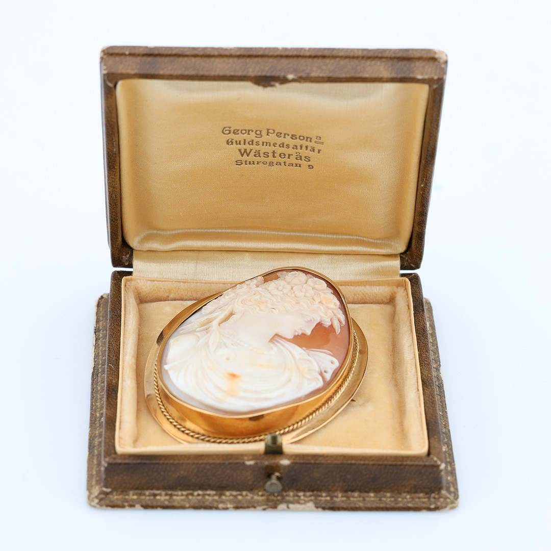 BROSCH/HÄNGE, 18K guld med camé, år 1924.