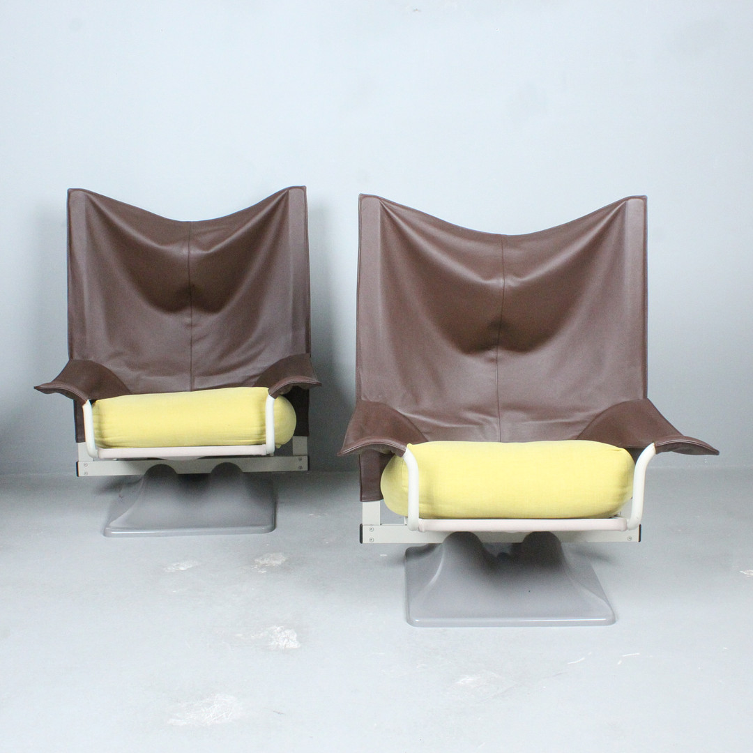 PAOLO DEGANELLO. Cassina. Paar Sessel / Armlehnsessel, Modell 'AEO', Leder.