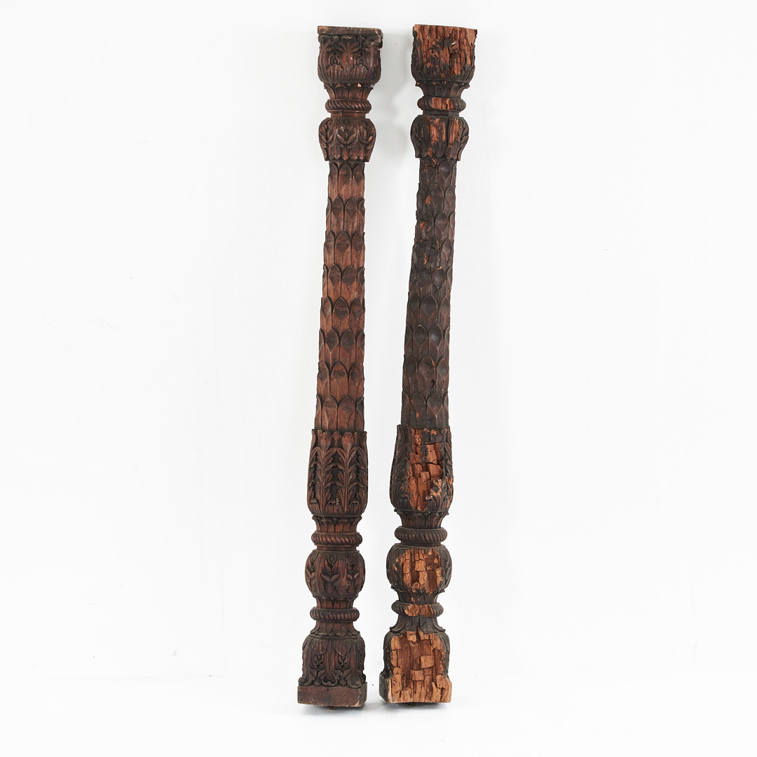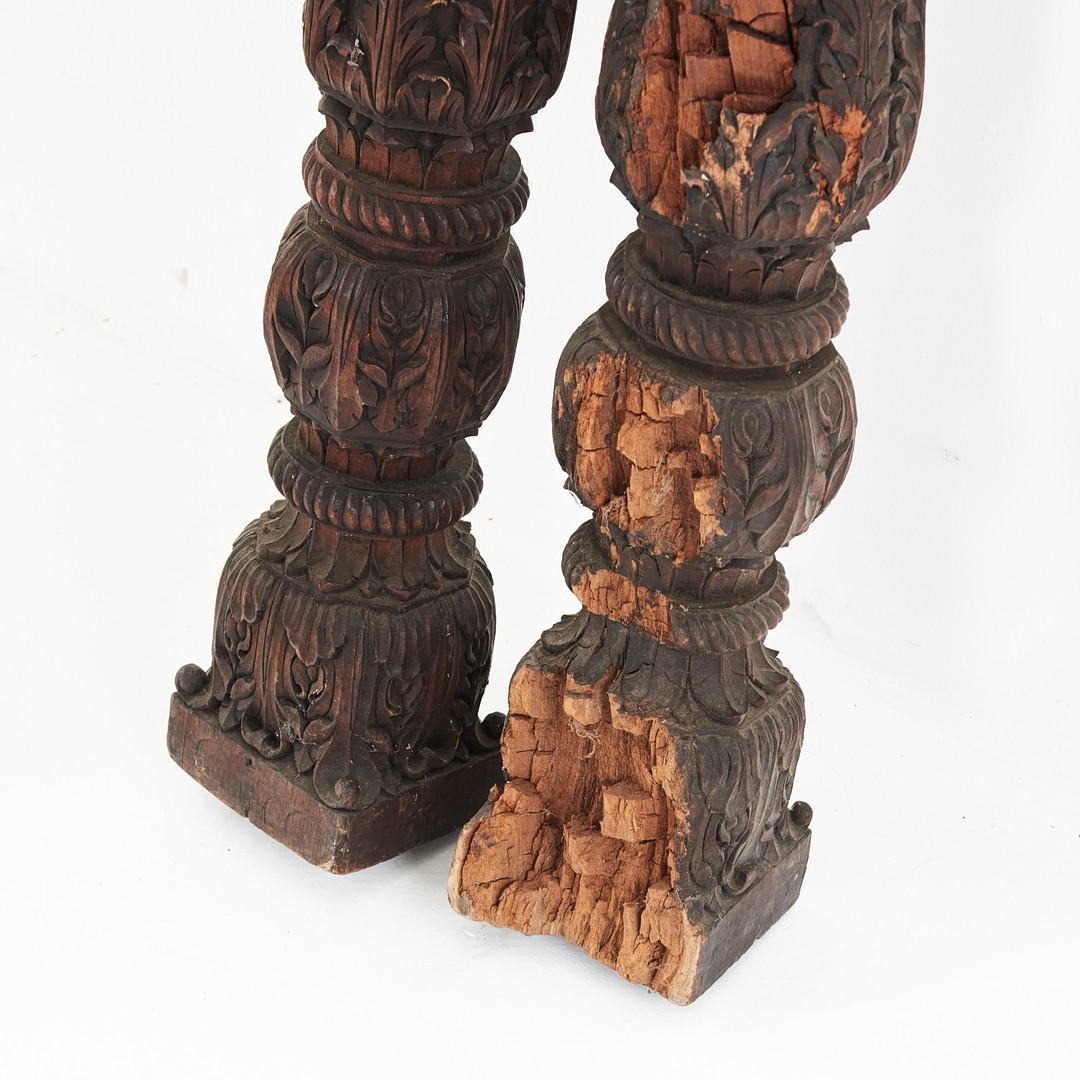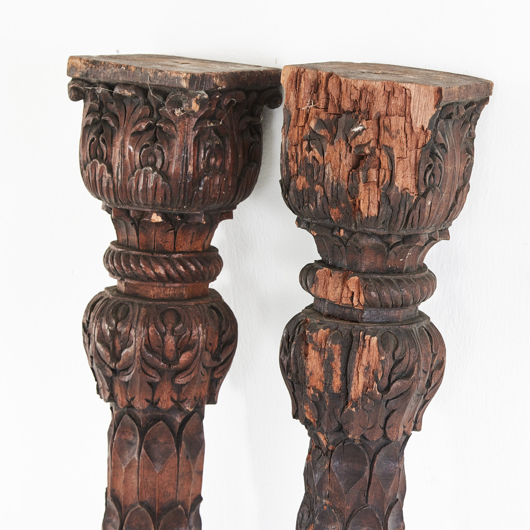 KOLONNER, 1 par, Asien, skulpterade i trä med dekor av blad .