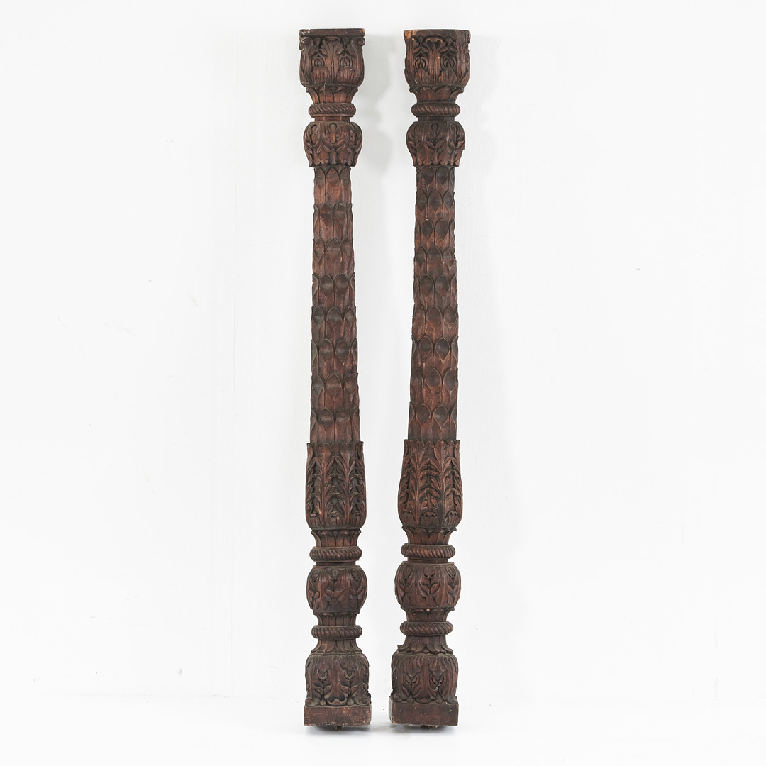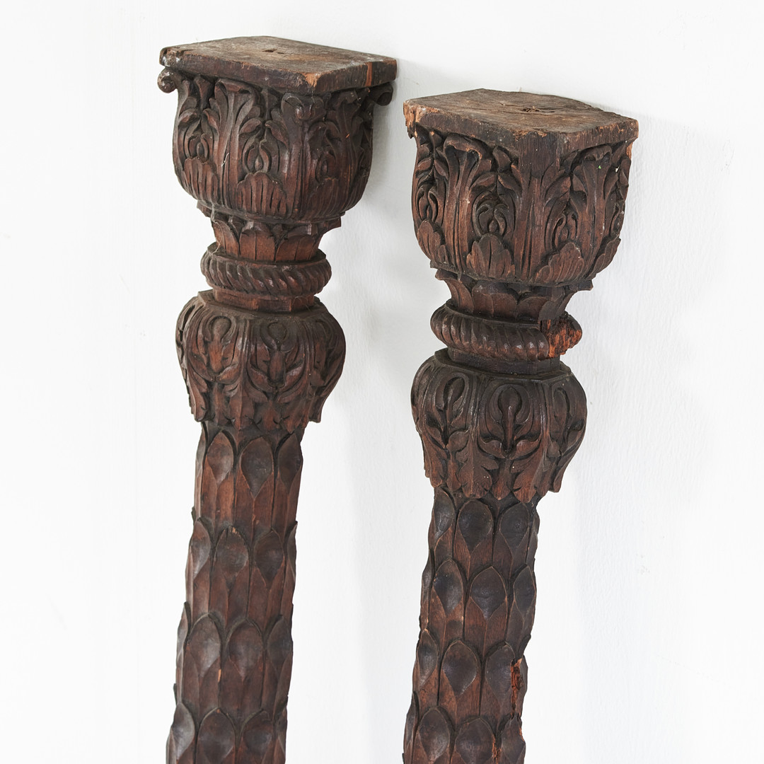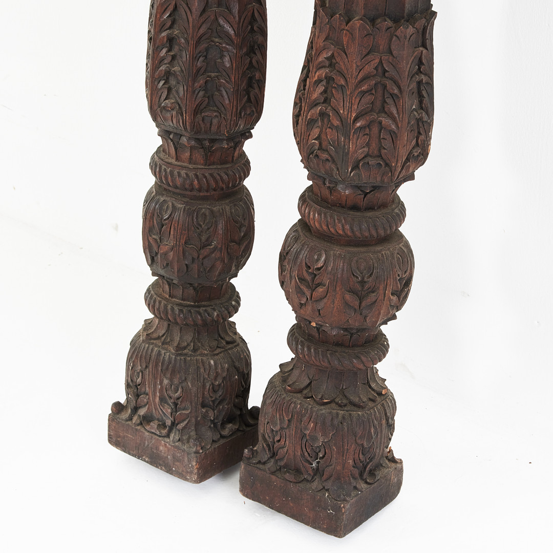 KOLONNER, 1 par, Asien, skulpterade i trä med dekor av blad .