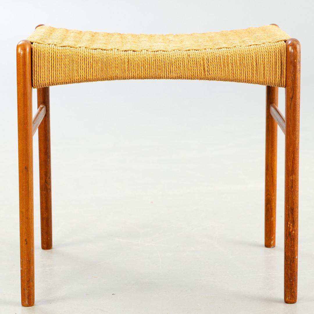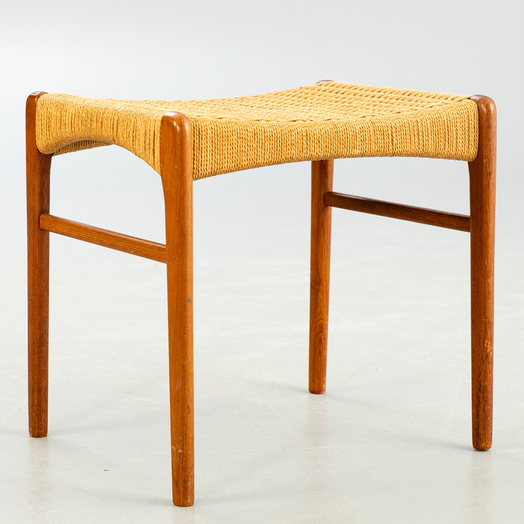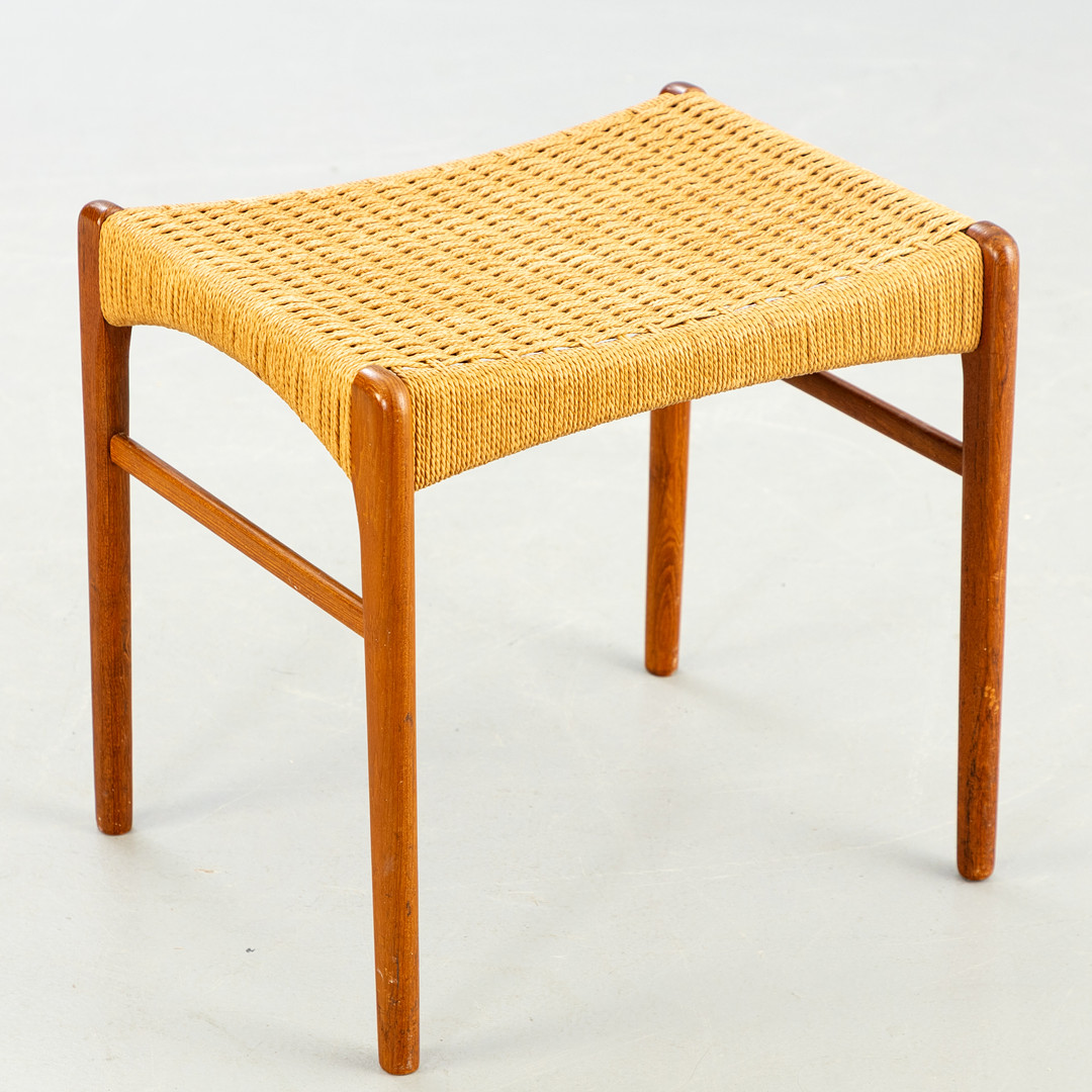 PEDER KRISTENSEN. Glyngore Stolefabrik. Teak Hocker mit Papierkordel, Dönemark, 1960er Jahre.
