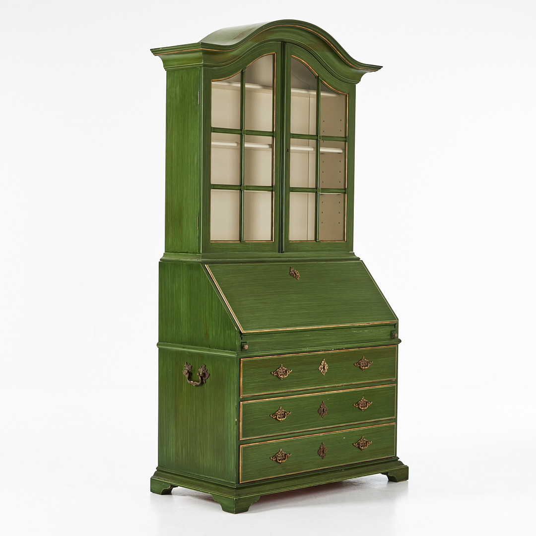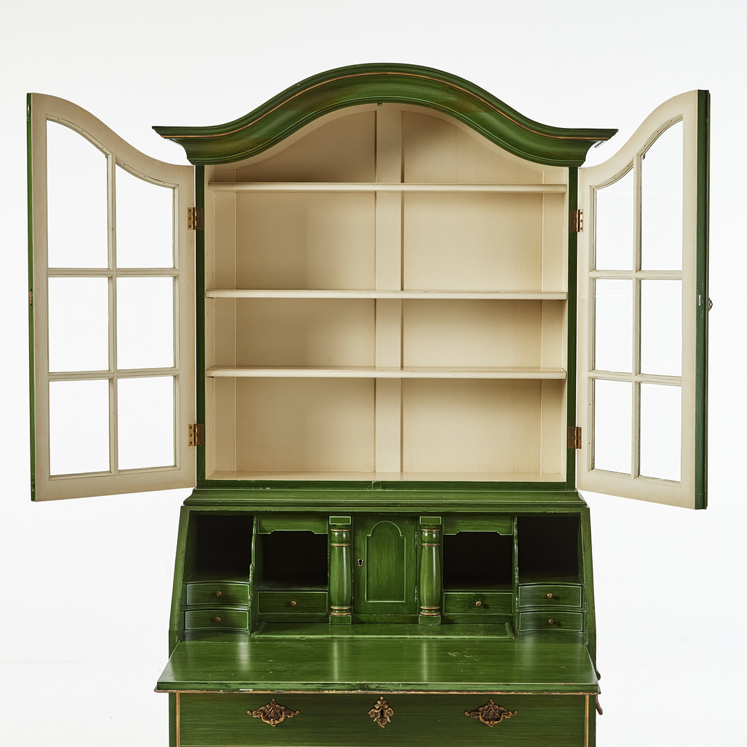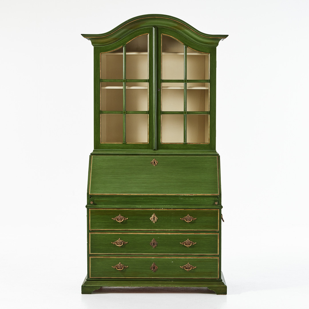 SKRIVSKÅP, Åmells Möbler, 1900-talets andra hälft, rokokostil, 2-delat, bemålat, understycke med tre lådor, överstycke med glasade dörrar med hyllinredning.