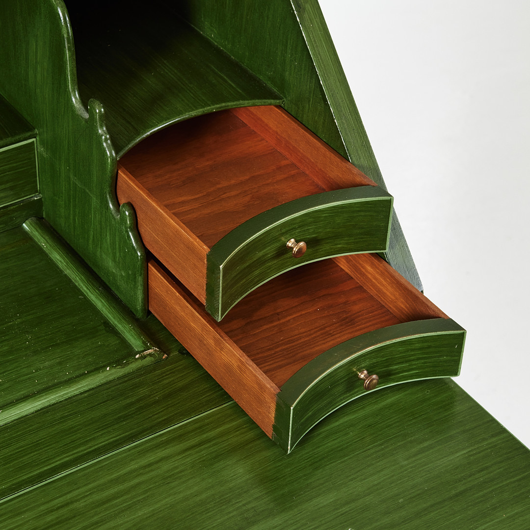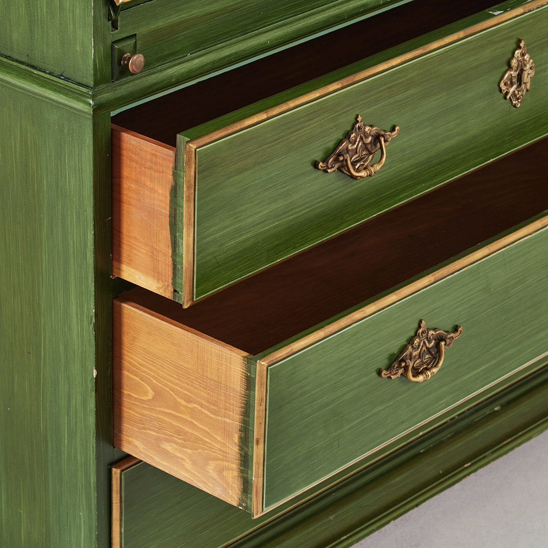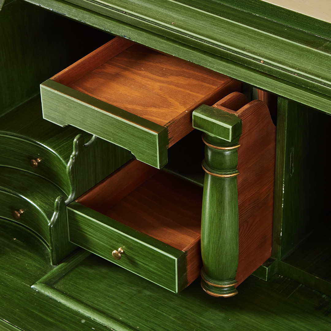 SKRIVSKÅP, Åmells Möbler, 1900-talets andra hälft, rokokostil, 2-delat, bemålat, understycke med tre lådor, överstycke med glasade dörrar med hyllinredning.