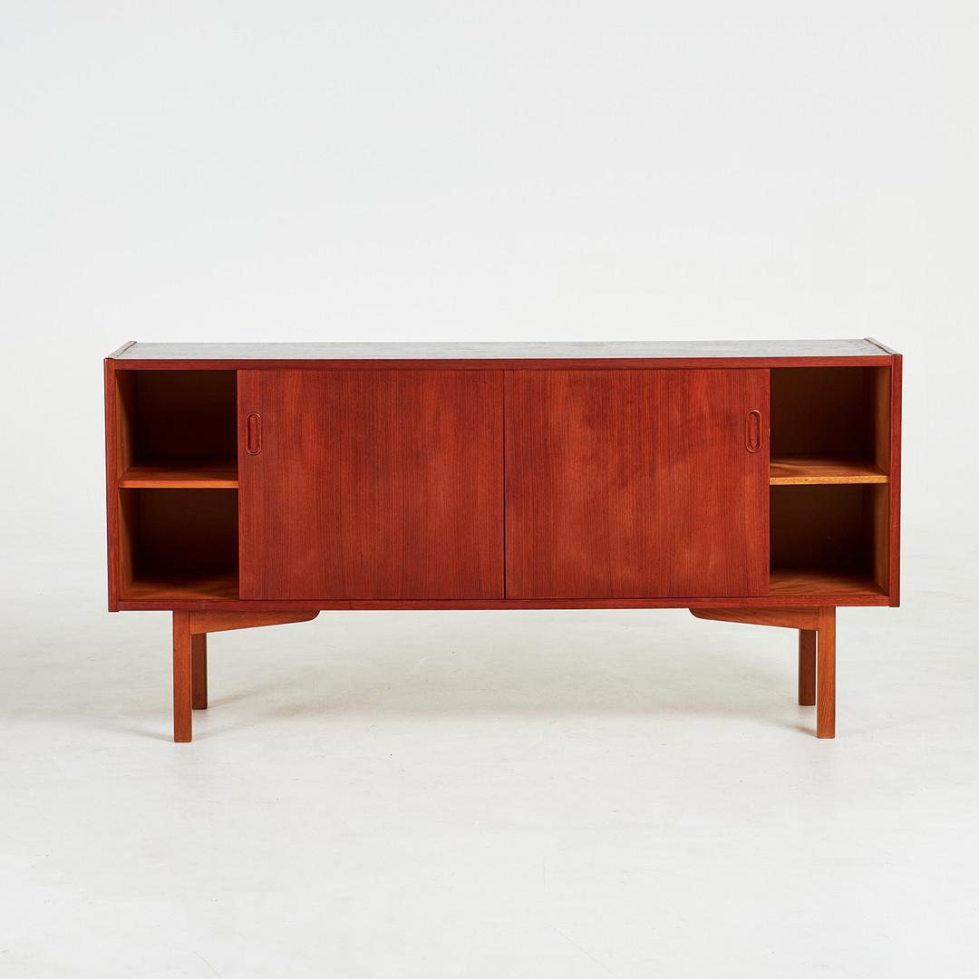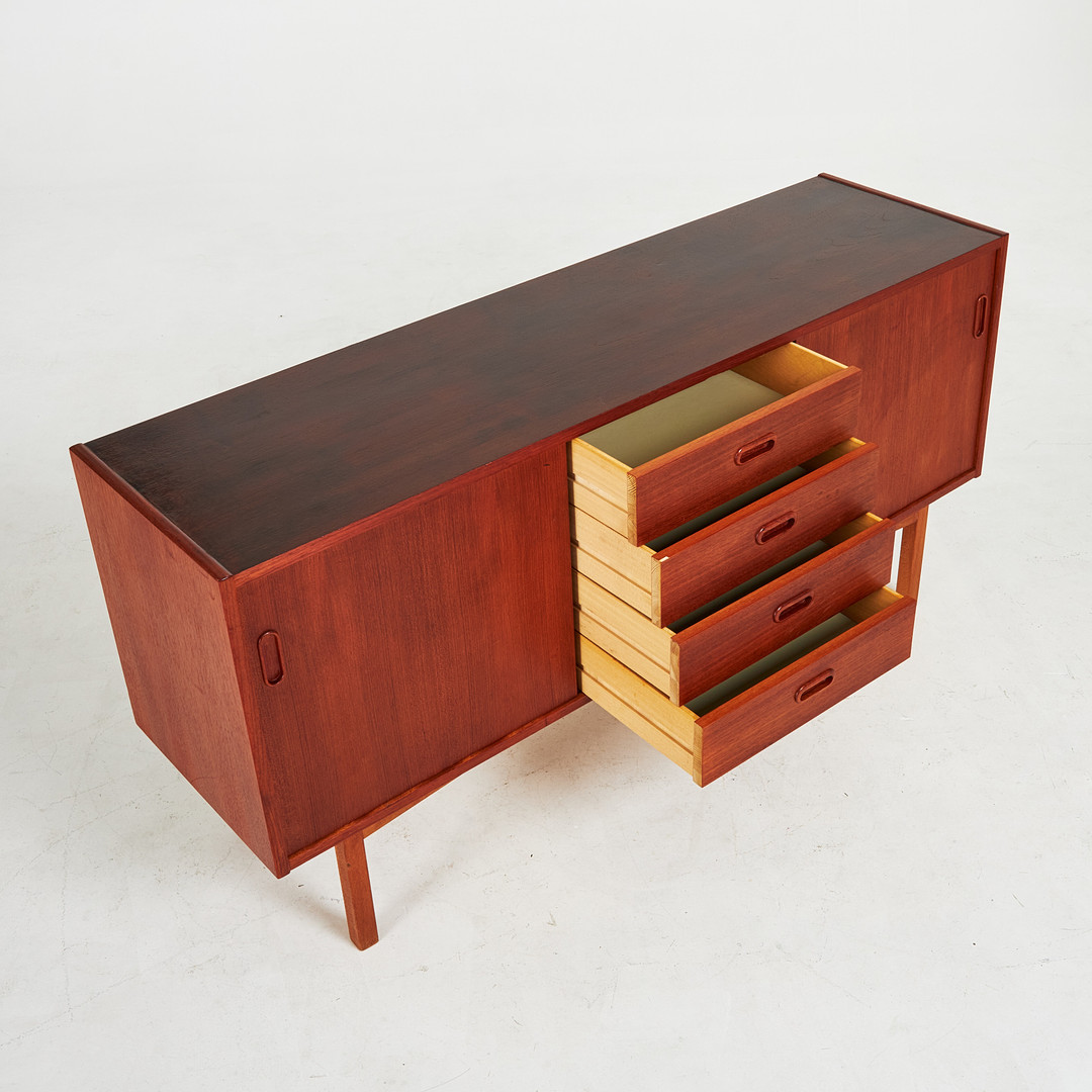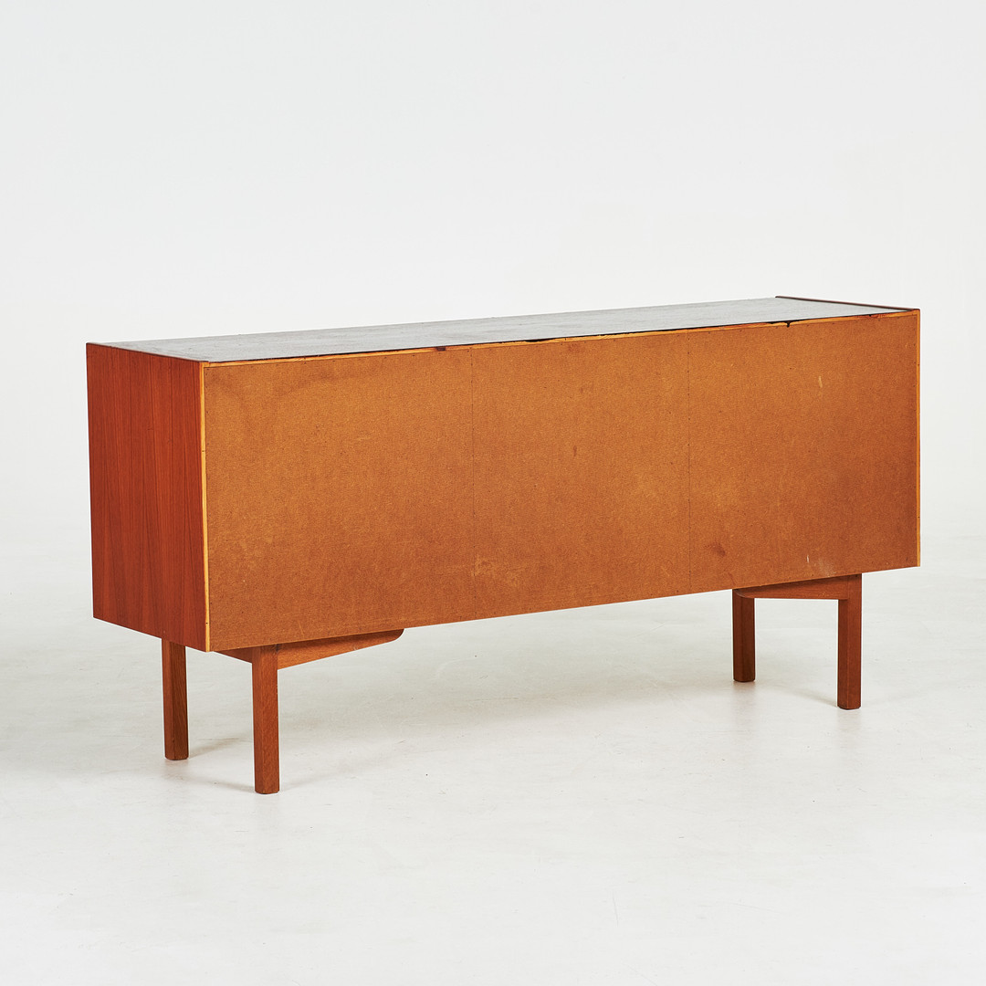 SIDEBOARD, 1950/60-tal, lådor och dragdörrar med bakomliggande hyllor, fanér i teak.