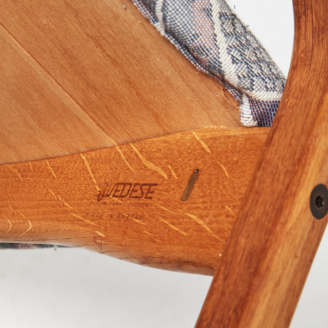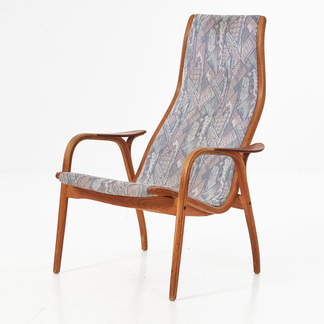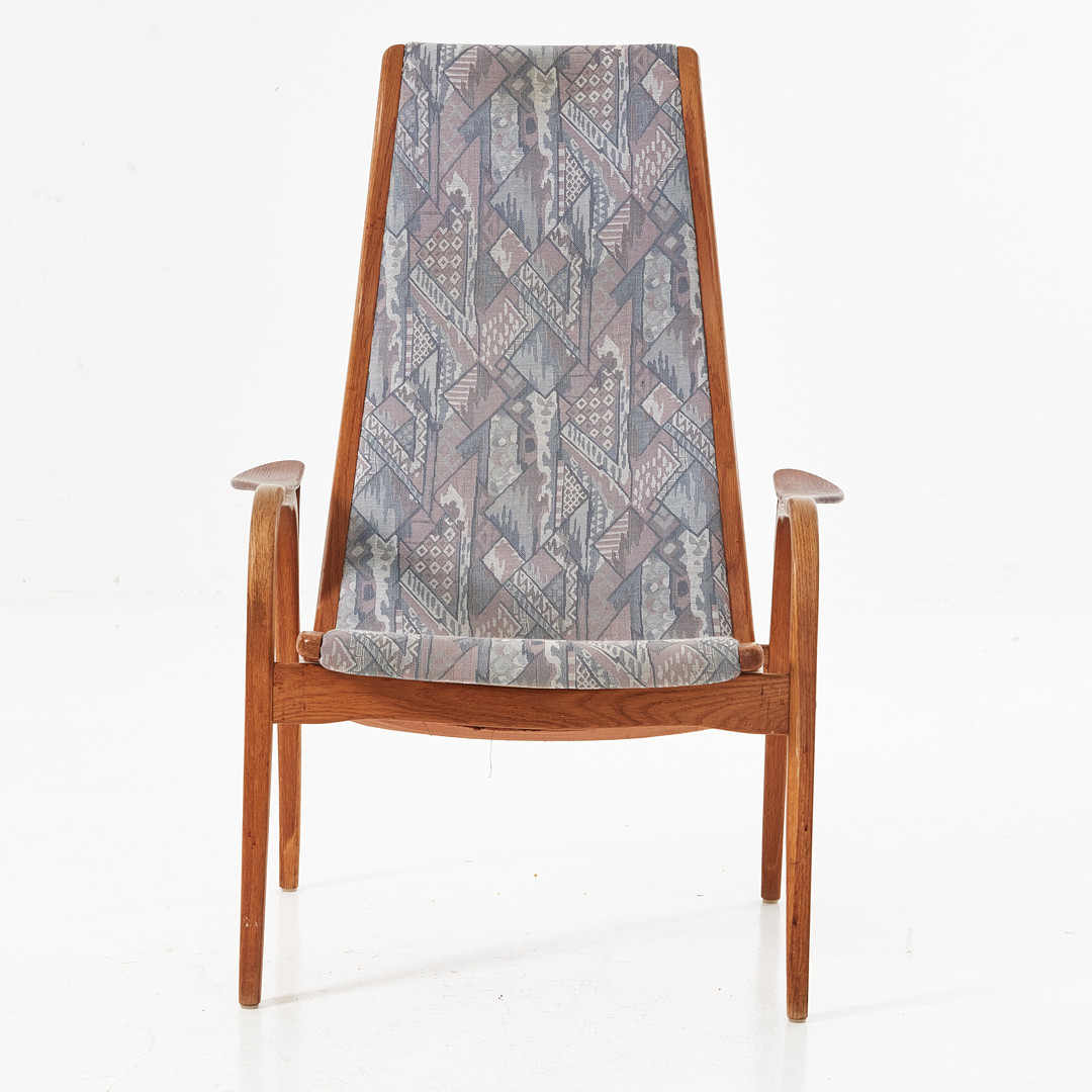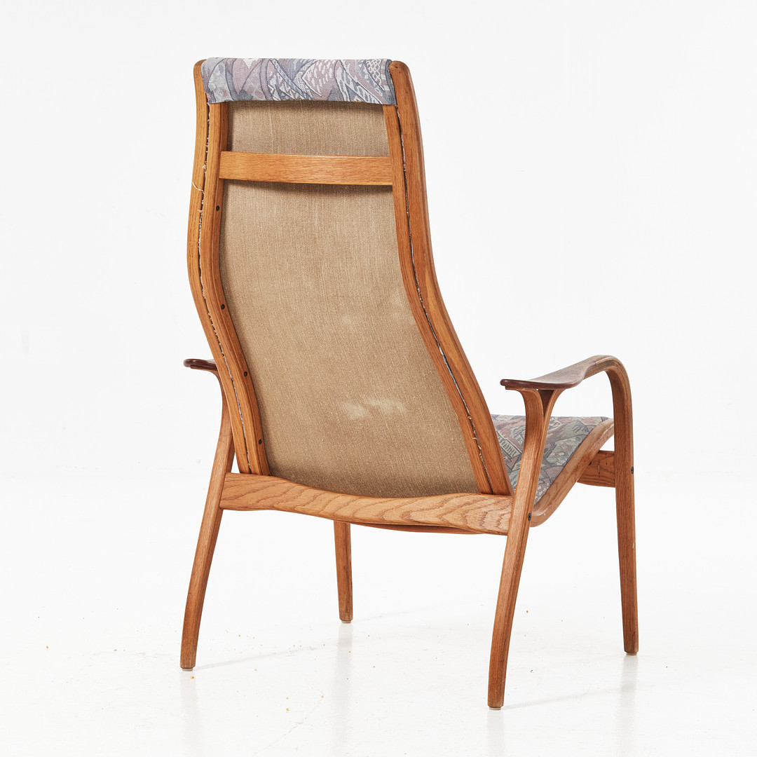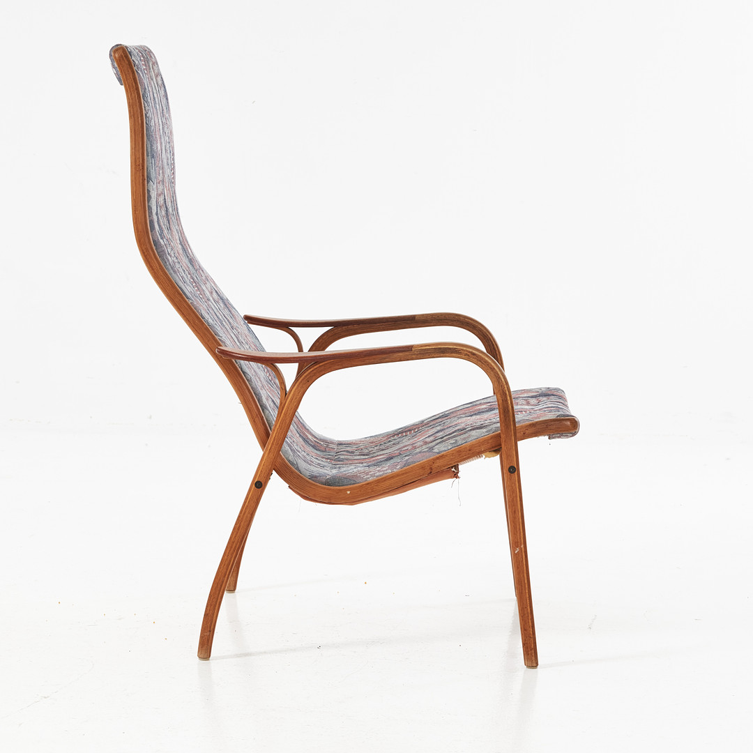 YNGVE EKSTRÖM. Fåtölj med fotpall, "Lamino", Swedese, ek och teak, textilklädd.