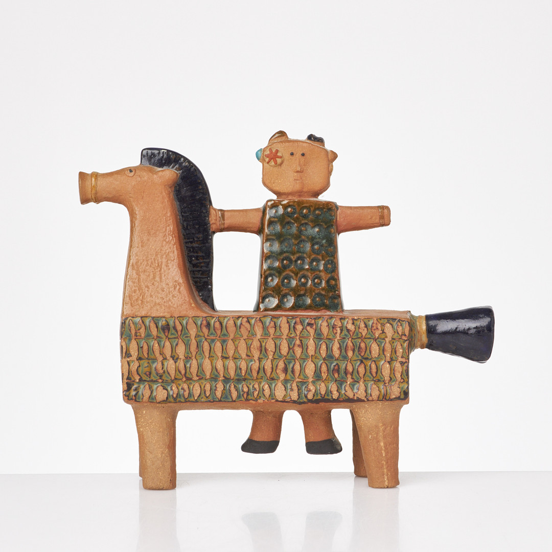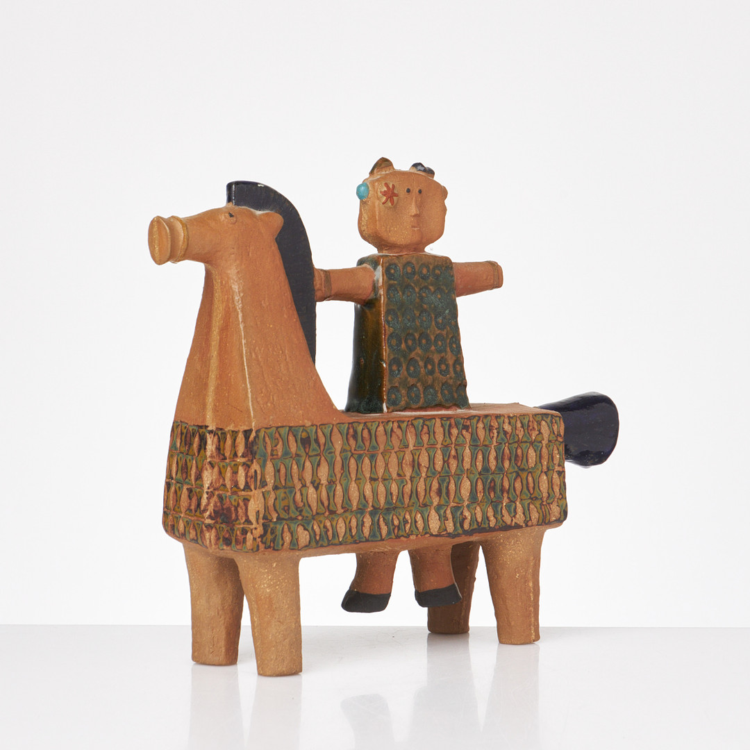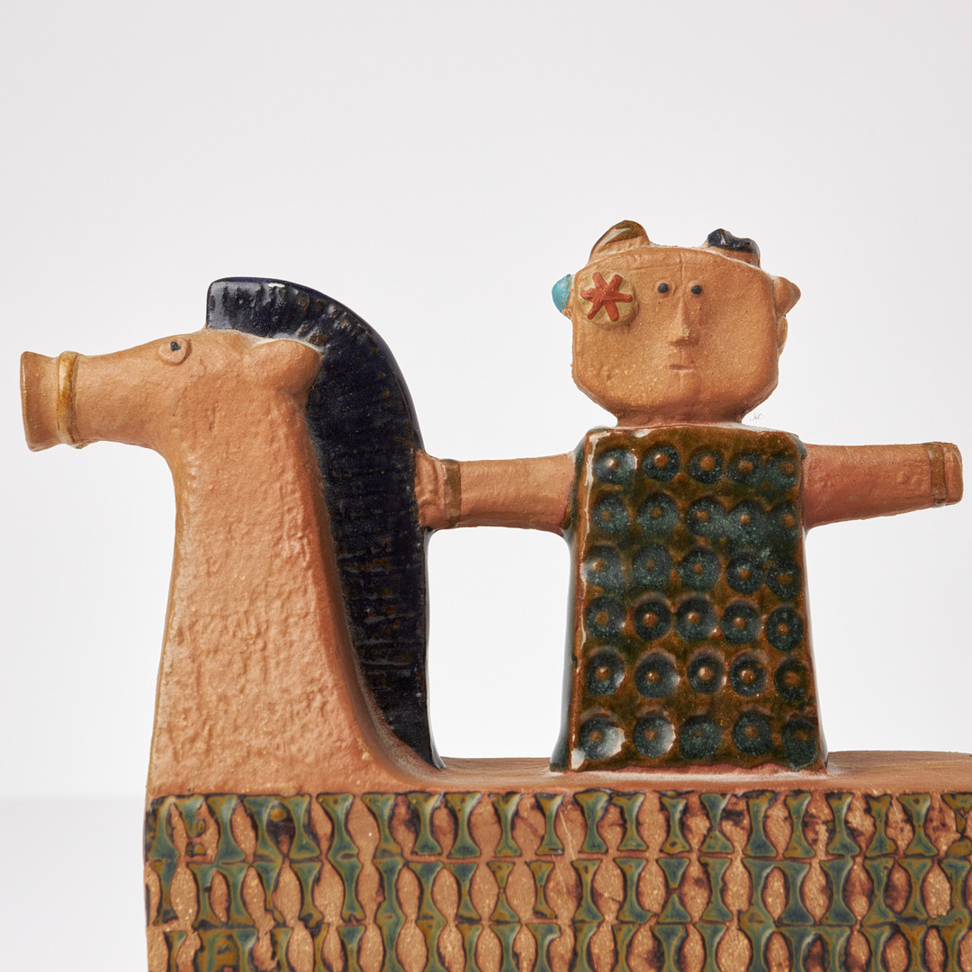 STIG LINDBERG. Ryttare på häst, figurin, Gustavsbergs studio, inpressad dekor, delvist glaserad, ristad signatur.