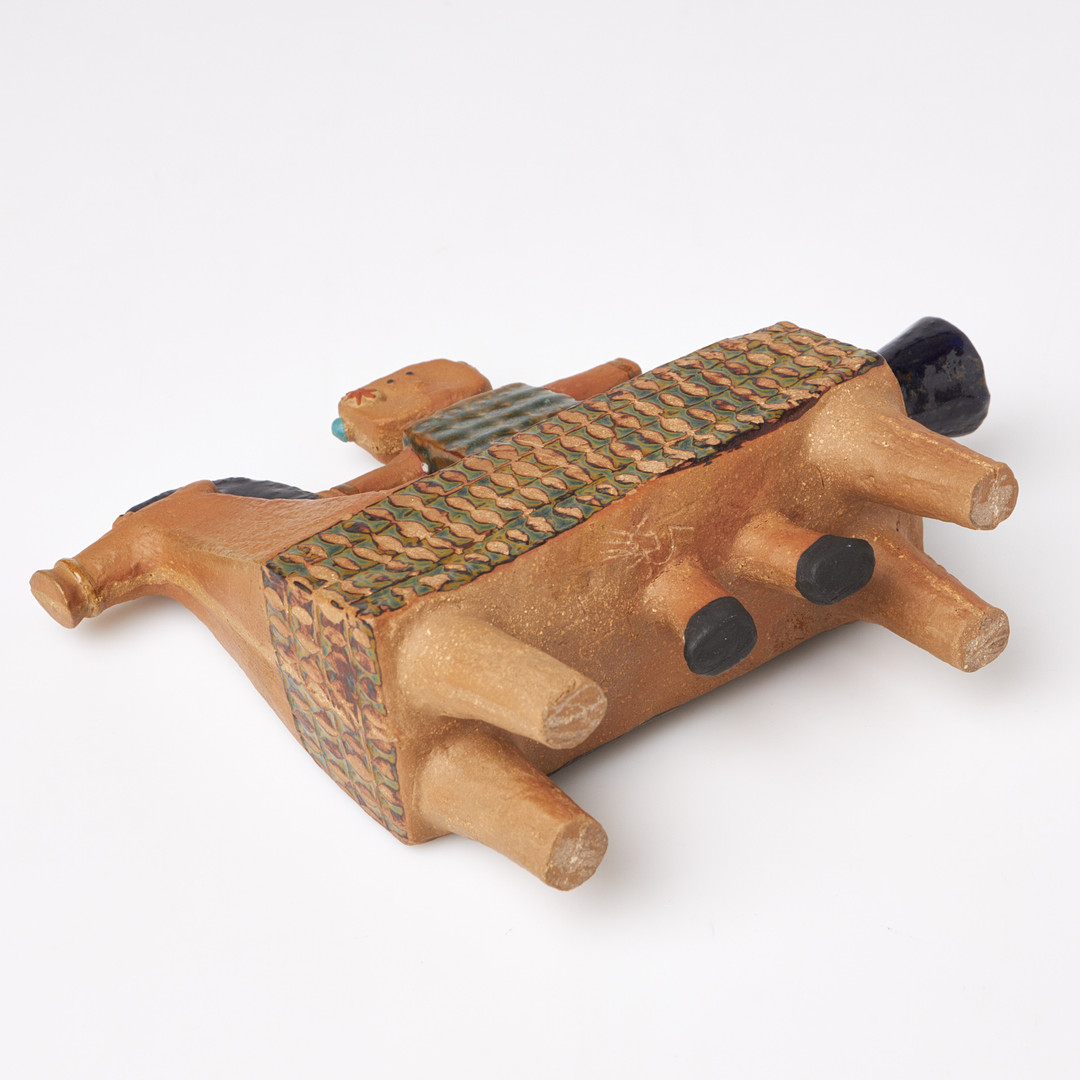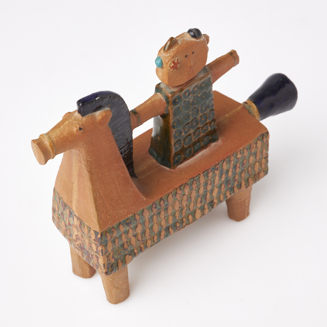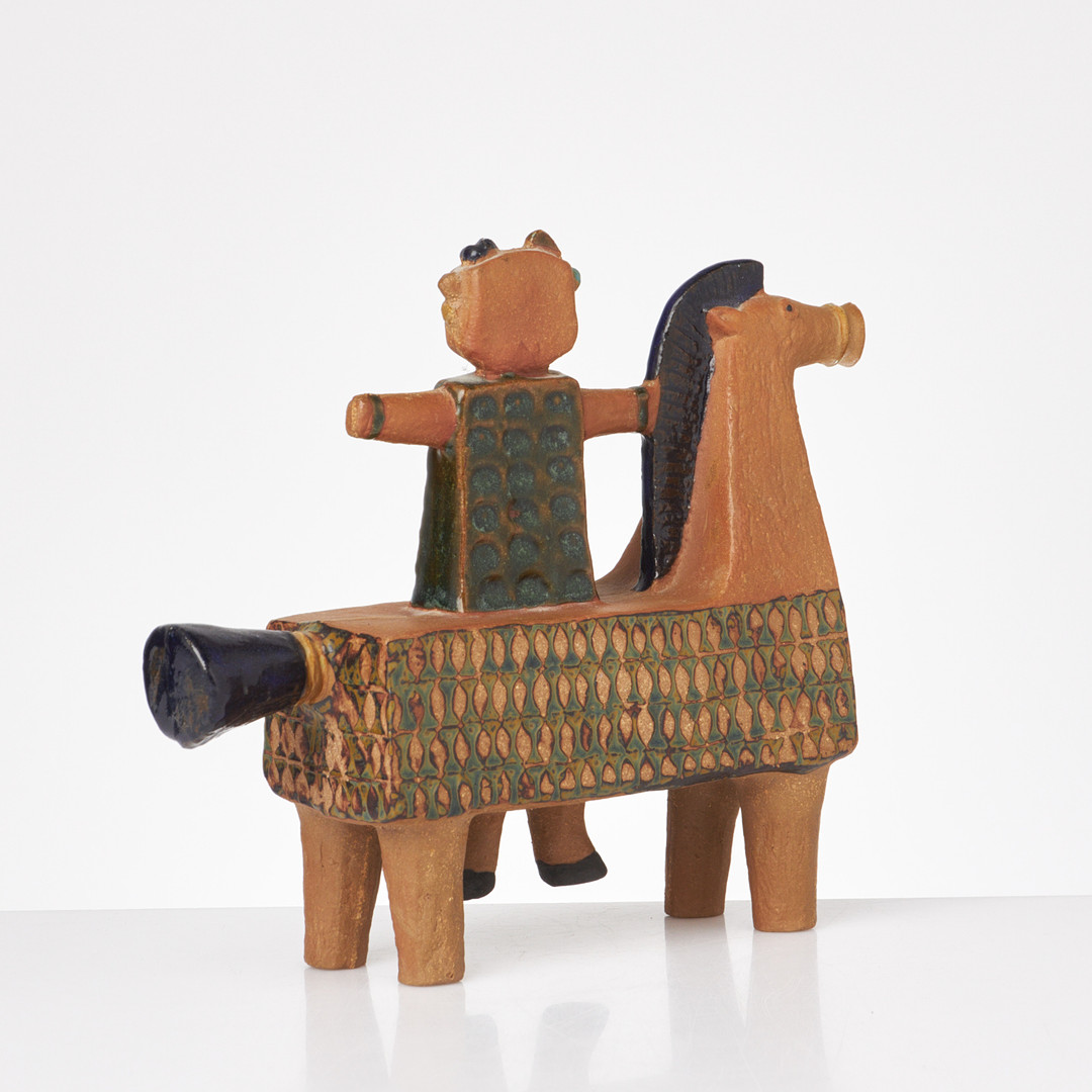 STIG LINDBERG. Ryttare på häst, figurin, Gustavsbergs studio, inpressad dekor, delvist glaserad, ristad signatur.