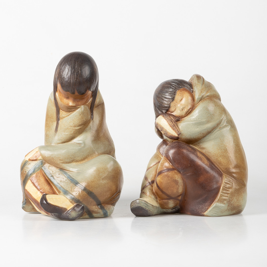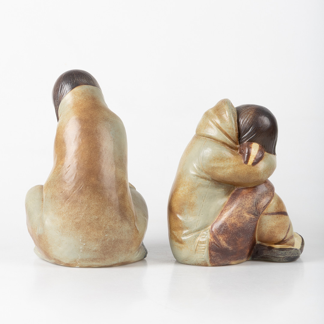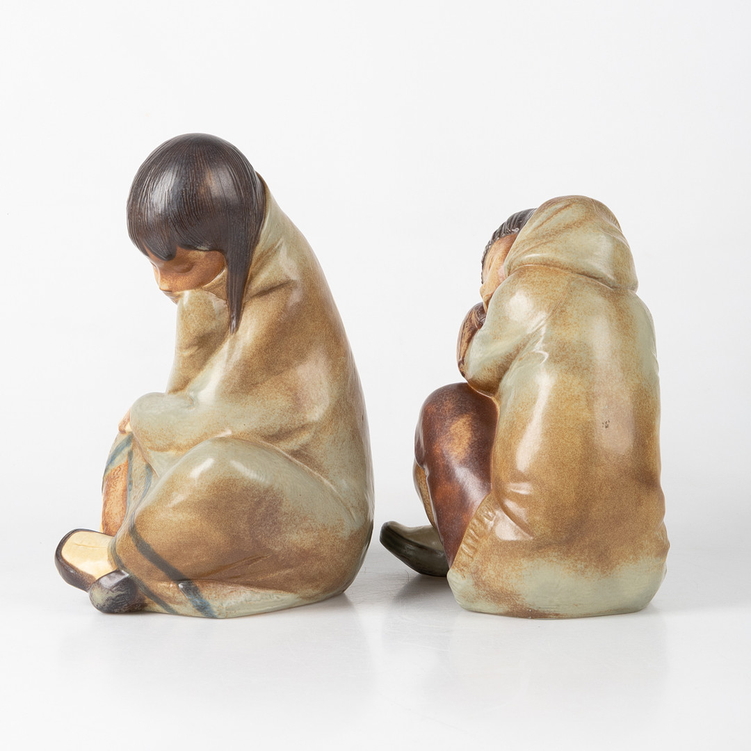 FIGURINER, Inuiter, 2 stycken, Lladro, porslin, Spanien, 1900-talets andra hälft.