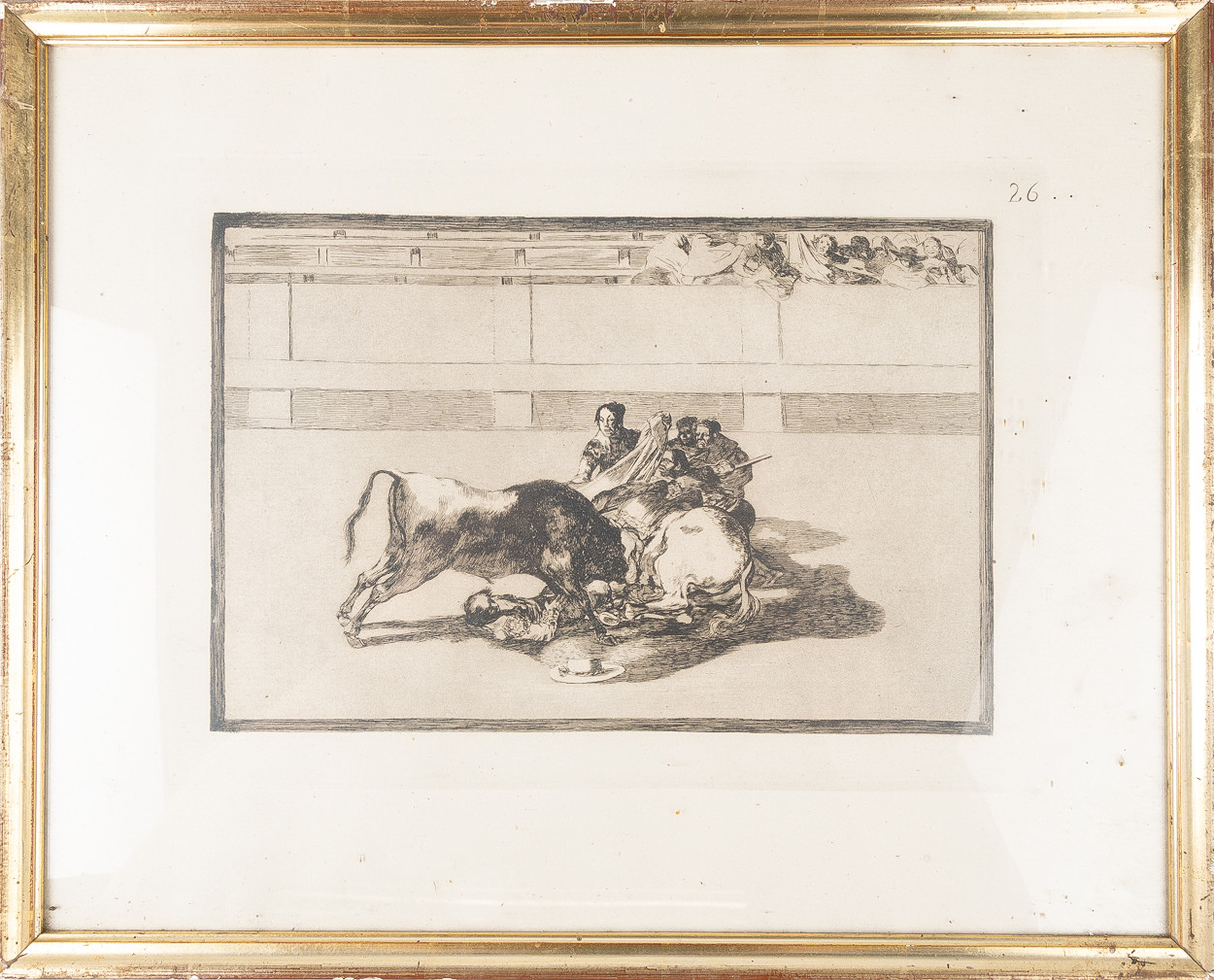 FRANCISCO DE GOYA Y LUCIENTES. EFTER. Etsning, "The Fall of a Picador", plate 26 from The Art of Bullfighting, 1814-1816.