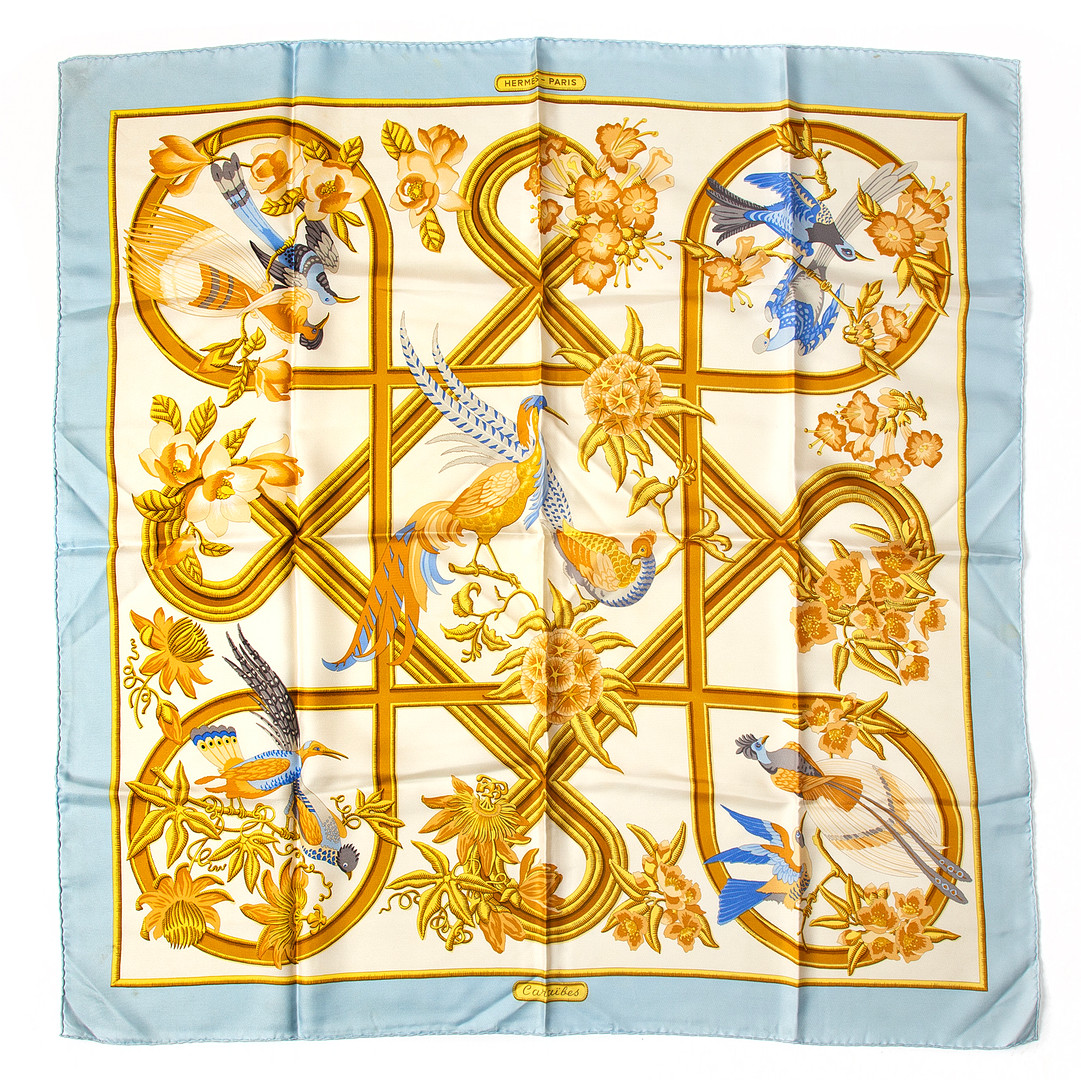 HERMÈS. Scarf, "Caraïbes", siden.