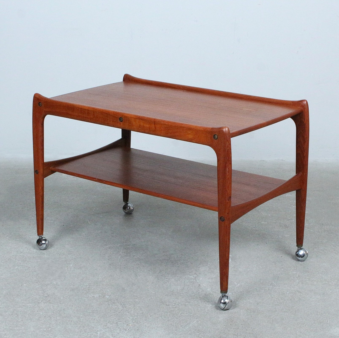 EDMUND BROUER. Brouer Møbelfabrik, Servierwagen auf Rollen, Teak, Dänemark, 1960er Jahre.