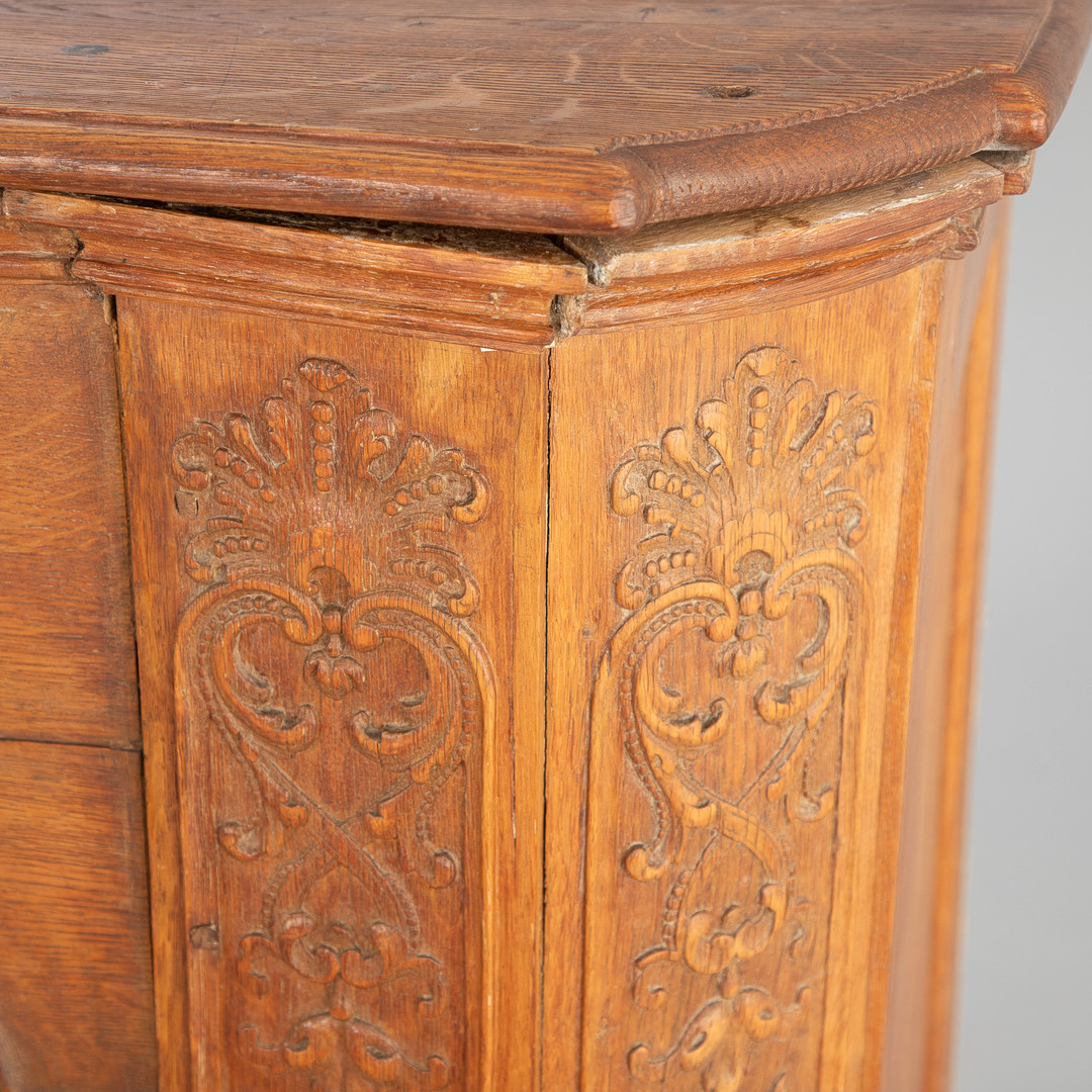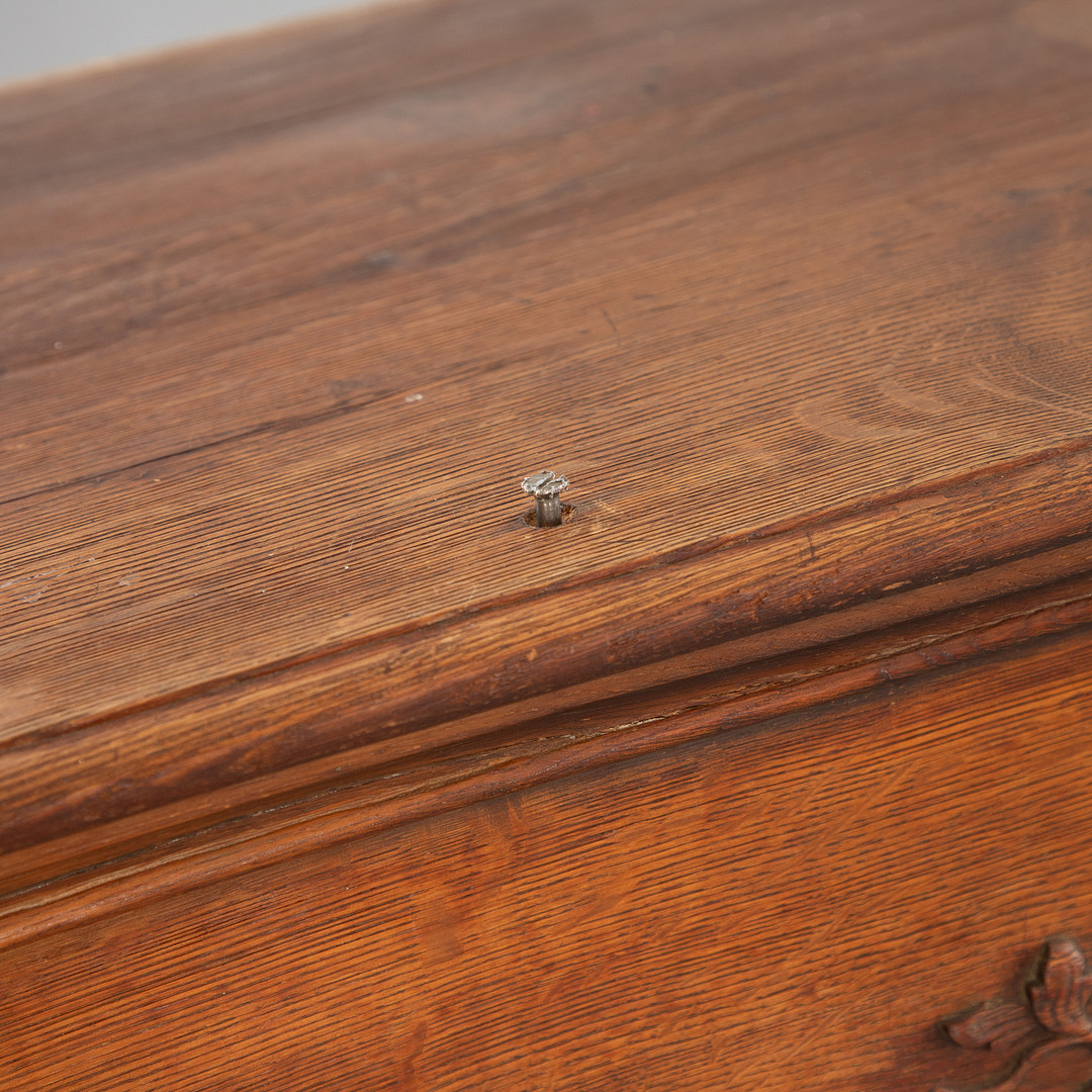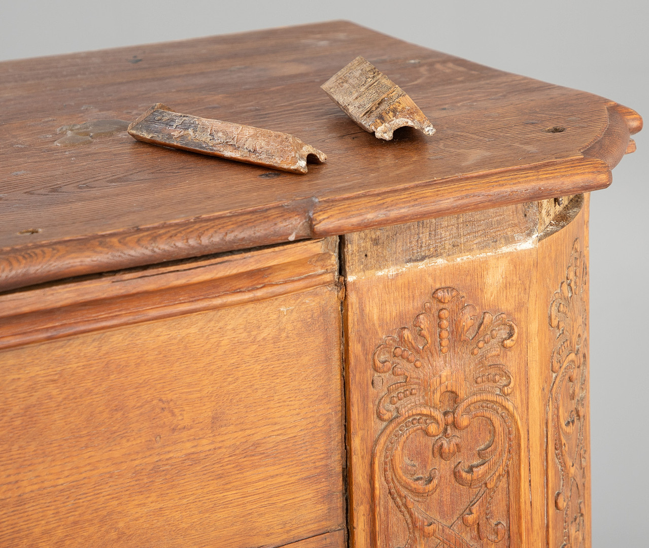 Alters- und Gebrauchsspuren, Teile der oberen Profilleiste müssen verleimt werden, Bereibungen, Kratzspuren und Defekte.