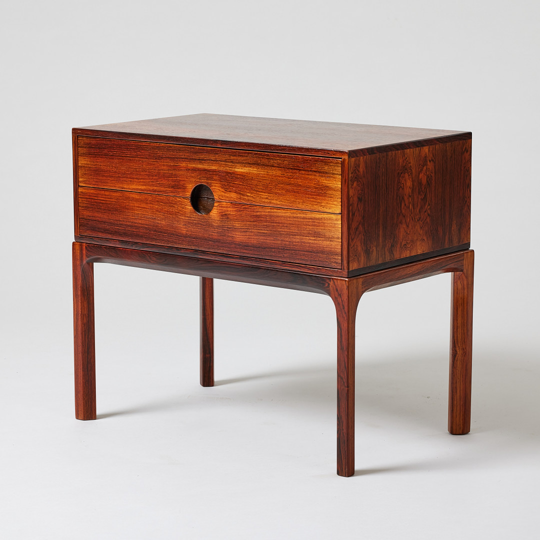 39. AKSEL KJERSGAARD. Spegel och mindre byrå, Odder, Danmark, jakaranda.