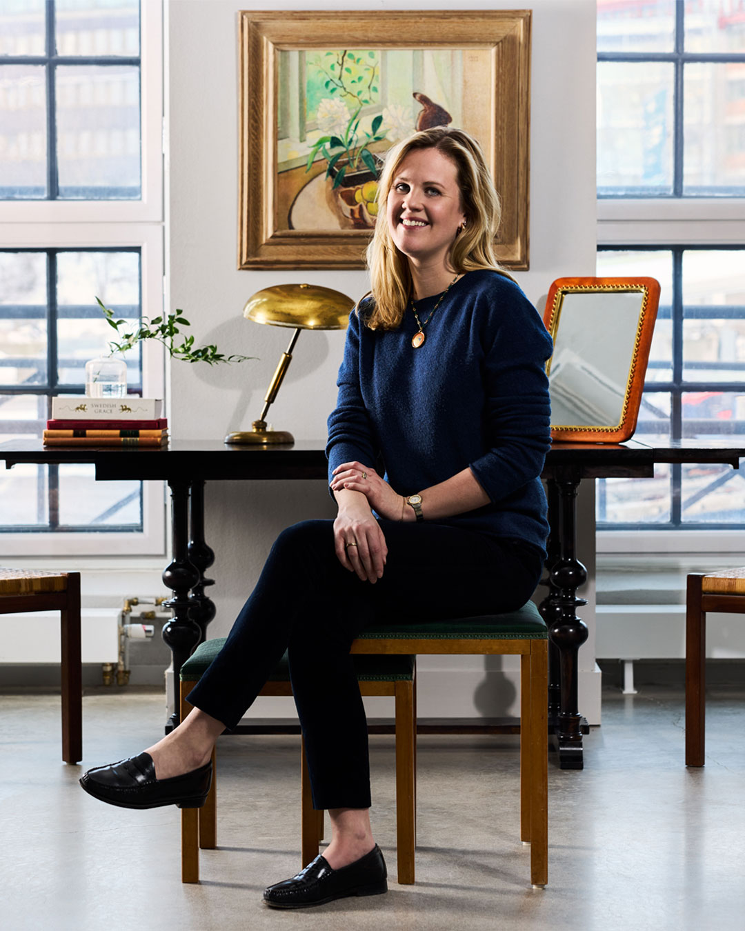 For Adrienne, a personal and original expression is essential to what makes an interior successful. In her selection, she has chosen pieces that speak to her aesthetic and created two rooms that contrast in mood and colour palette. The common thread is a playful meeting of Swedish design classics and the distinctive English style.