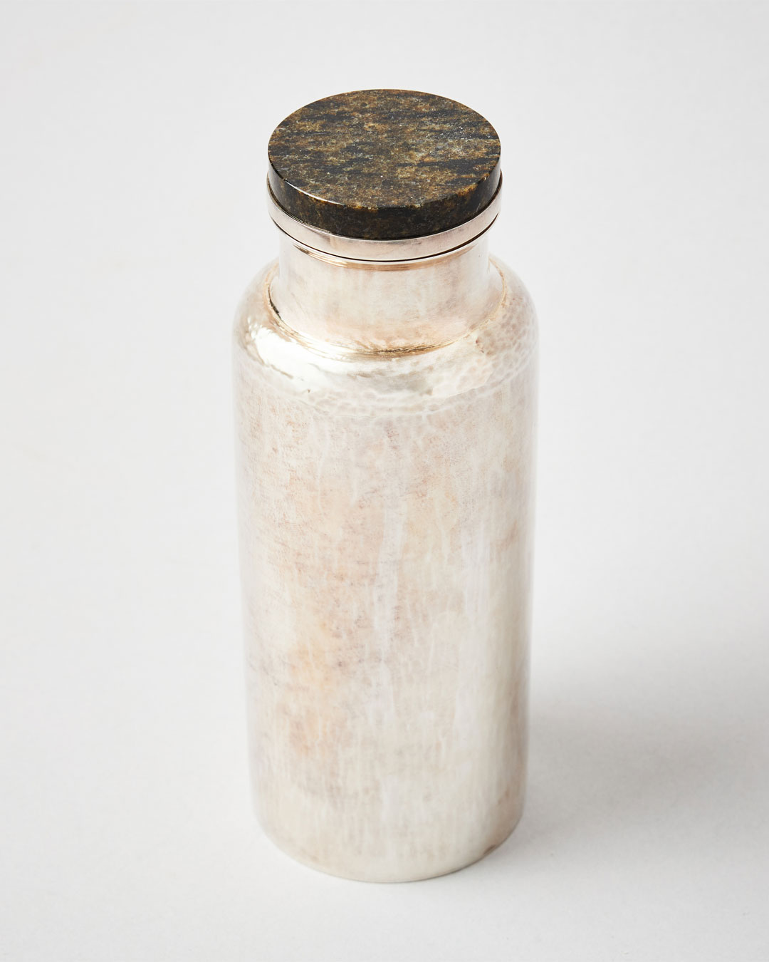As Stockholms Auktionsverk Magasin 5 now presents 36 works, his aesthetically restrained yet highly user-friendly corpus silver – it is a delight to have balloon whisks in silver in the kitchen! – is interspersed with jewellery of the highest order. Funnels and egg cups thus share space with rings and necklaces set with jasper and labradorite. The bottle with a granite lid is a quietly understated beauty, and what dessert would not taste better served with Jan Brunk’s ice cream spoons in sterling silver?