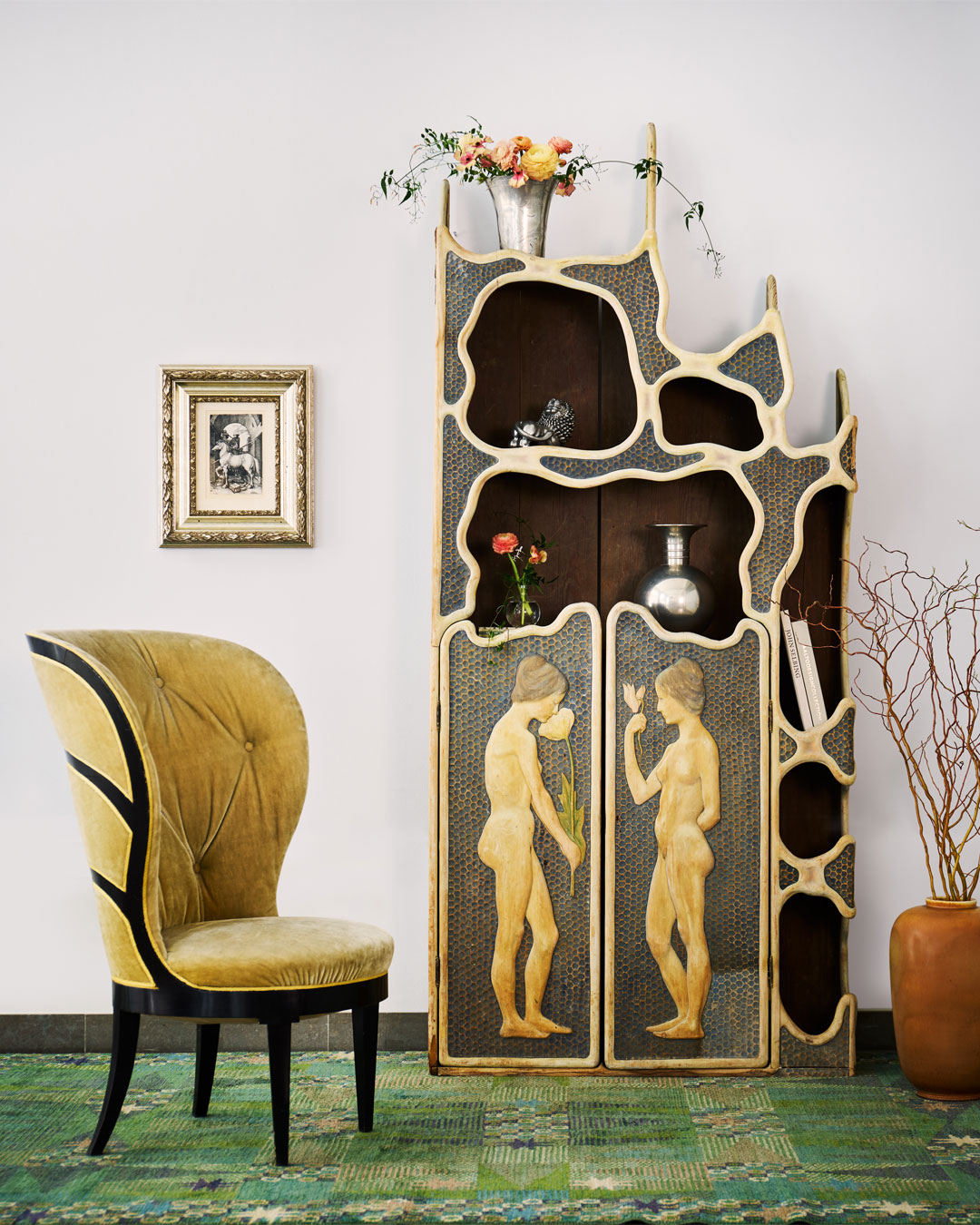 This season’s auction features an exceptional highlight in the form of a central work by Diego Giacometti – an oeuvre where the boundary between sculpture and function is constantly explored and redefined. Other highlights include a monumental, richly decorated cabinet by Valentin Kielland, Norway, 1902.