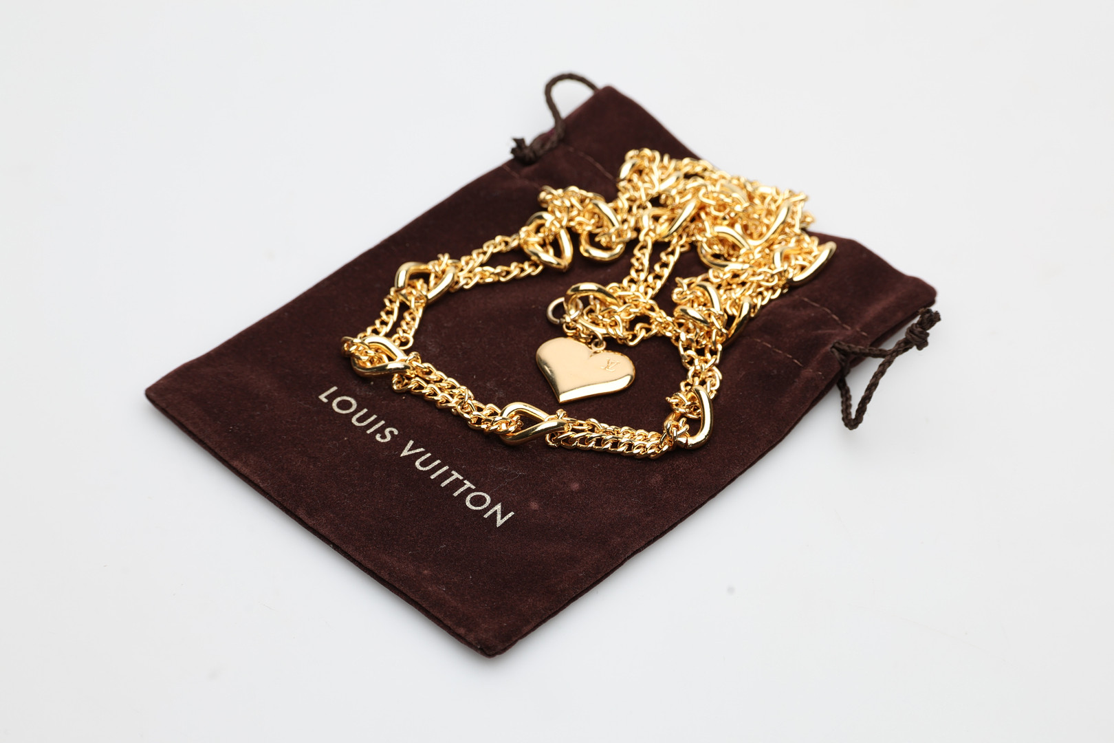 LOUIS VUITTON, guldfärgad halsband med hjärthänge LV.