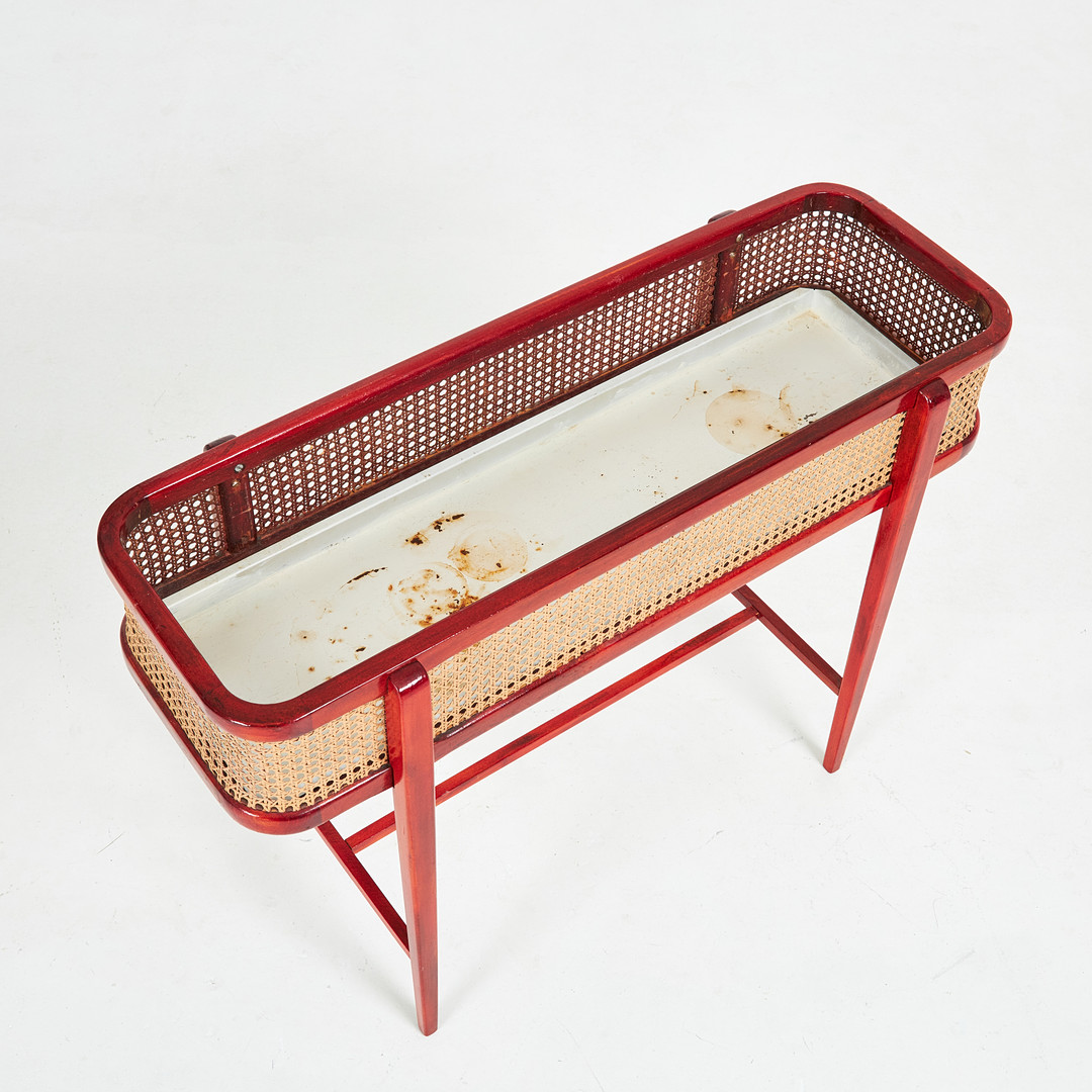 BLOMBORD, 1900-tal, rödmålad stomme, dekor i rotting.