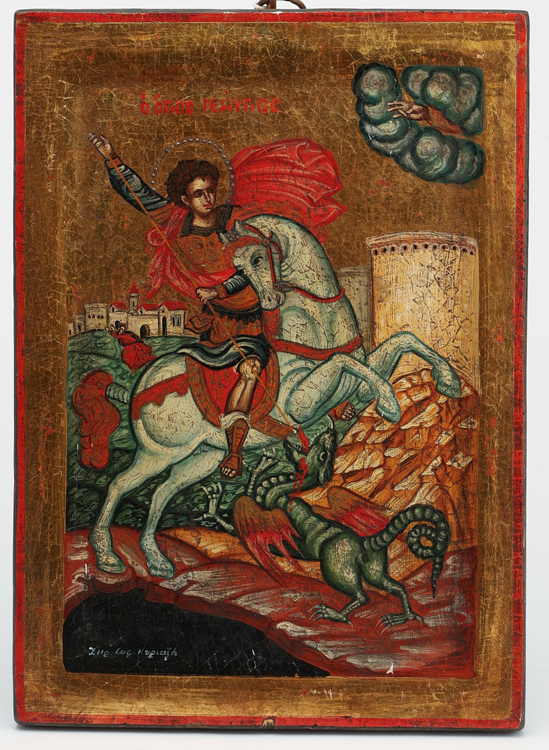 IKON, "Sankt Göran och draken", Grekland 1900-talets andra hälft, tempera på pannå.