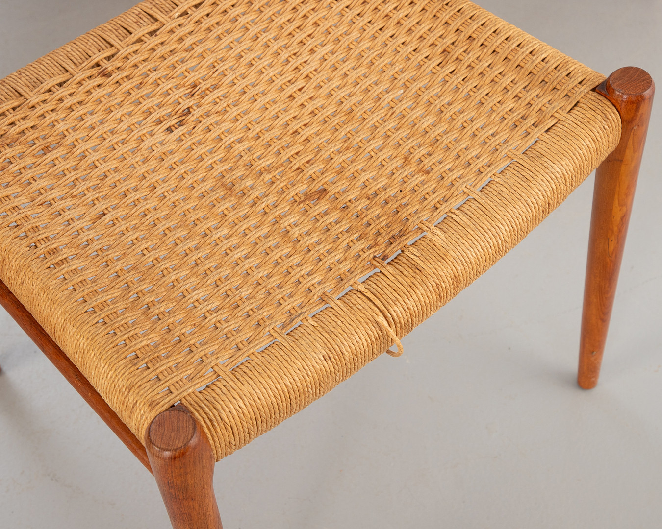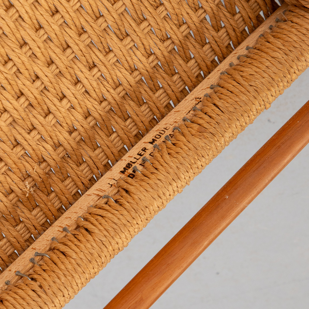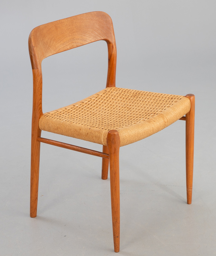NIELS O. MØLLER. 6 Esszimmerstühle 'Modell '75'. Teak, Papierkordel. Dänemark, 1960er Jahre.