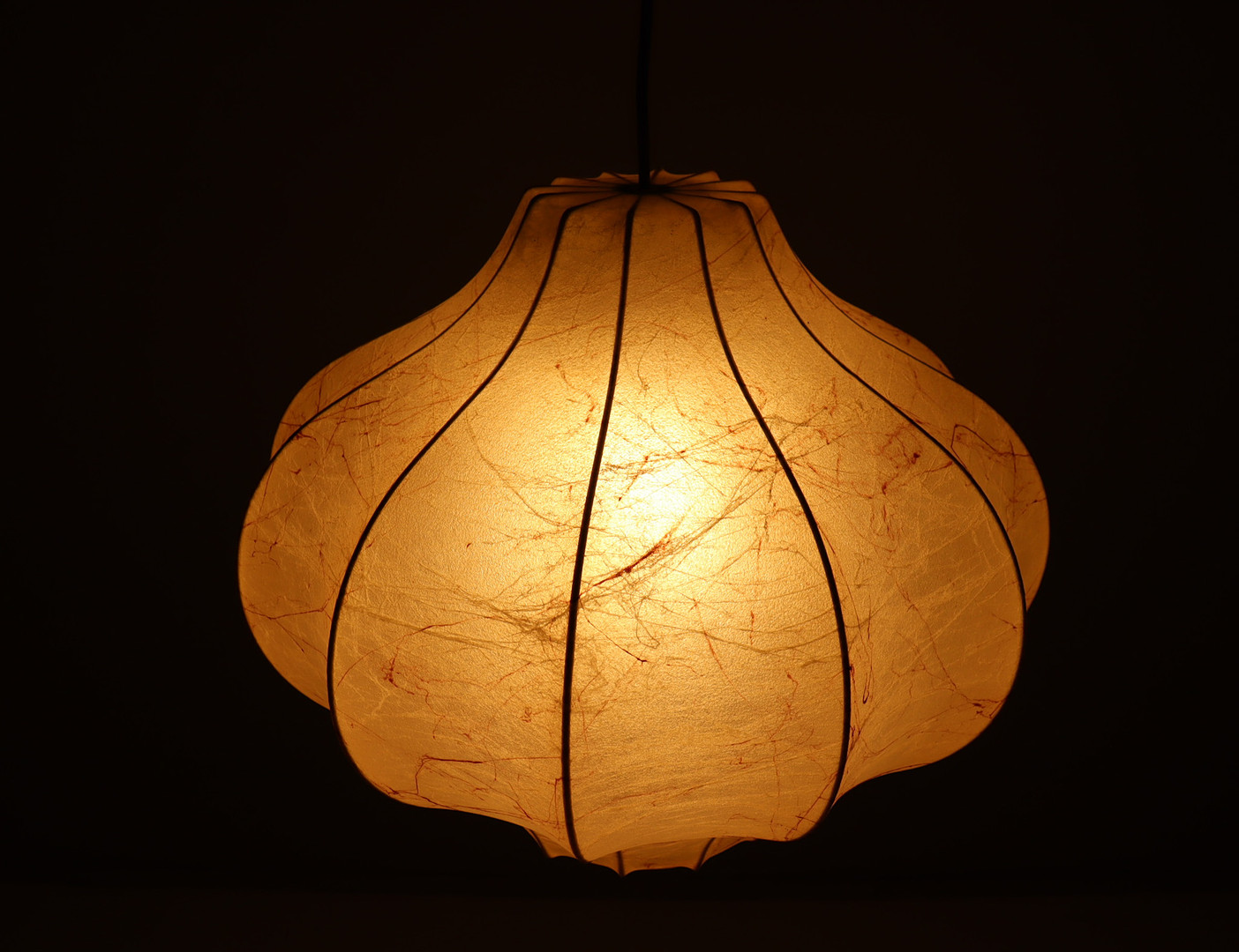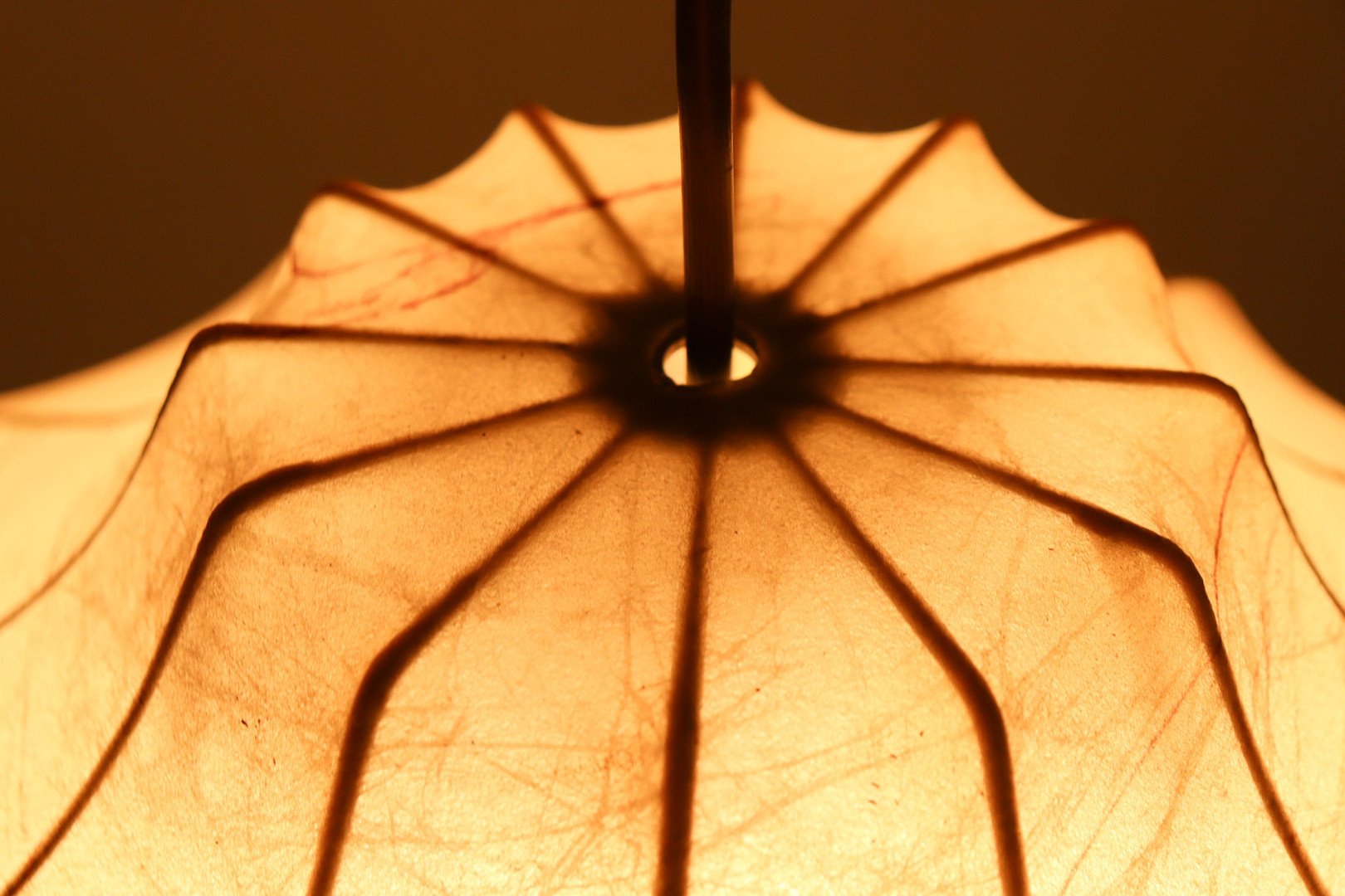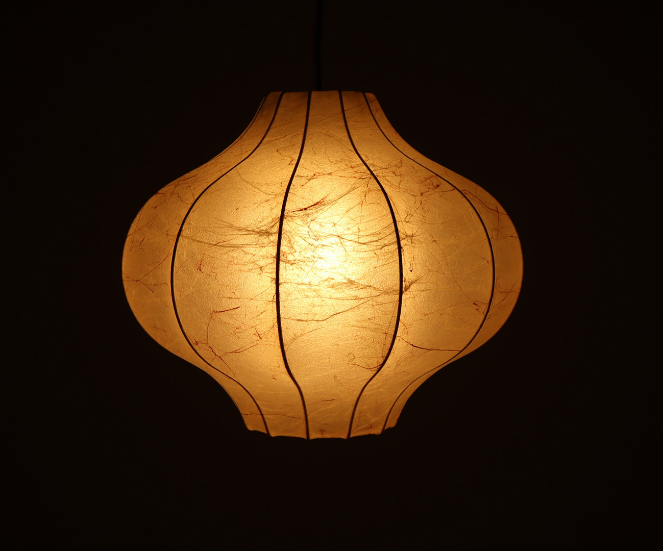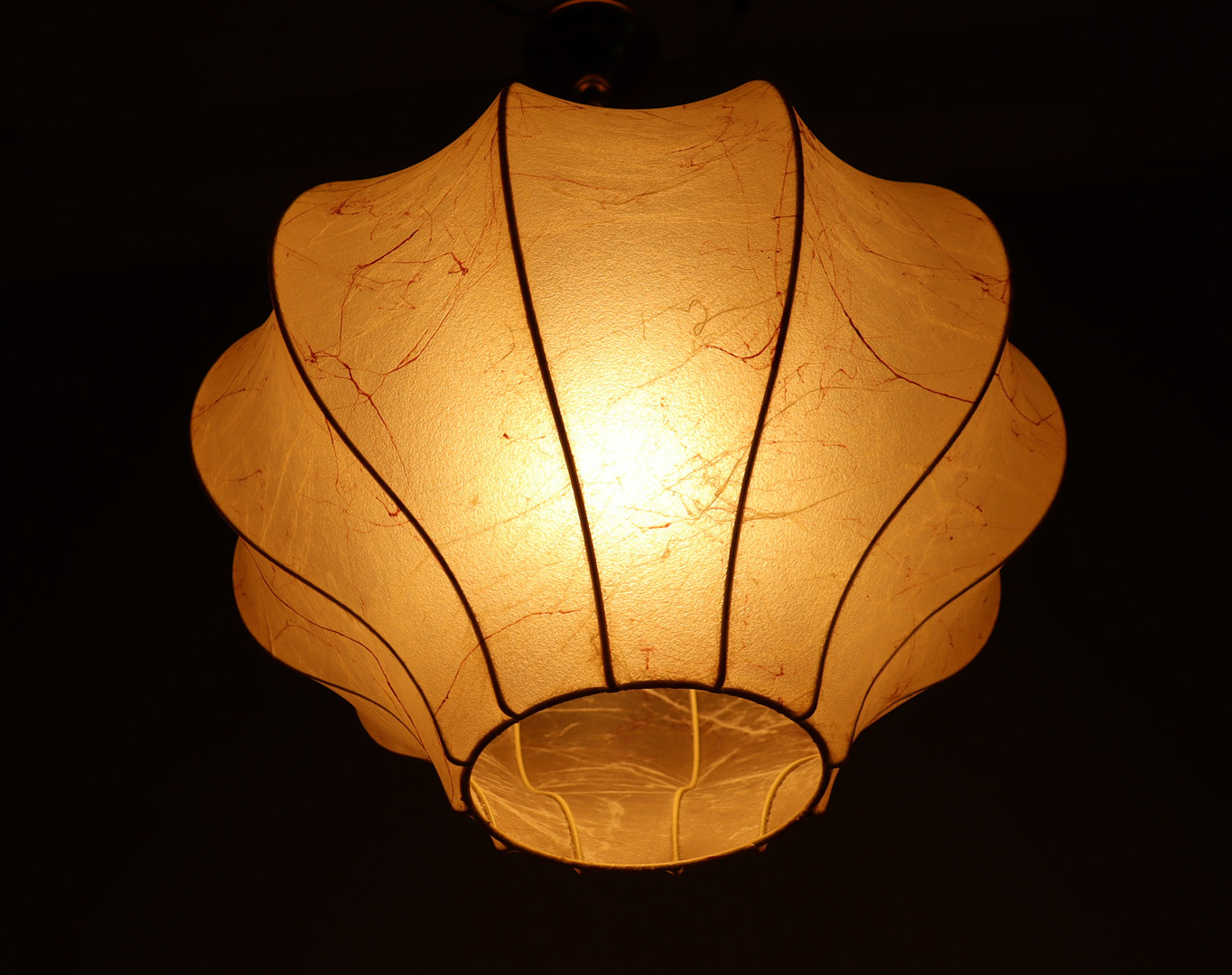 ACHILLE CASTIGLIONI. IM STIL VON. Mid Century Cocoon Deckenleuchte/Deckenlampe, Goldkant, Deutschland, 1960er Jahre.