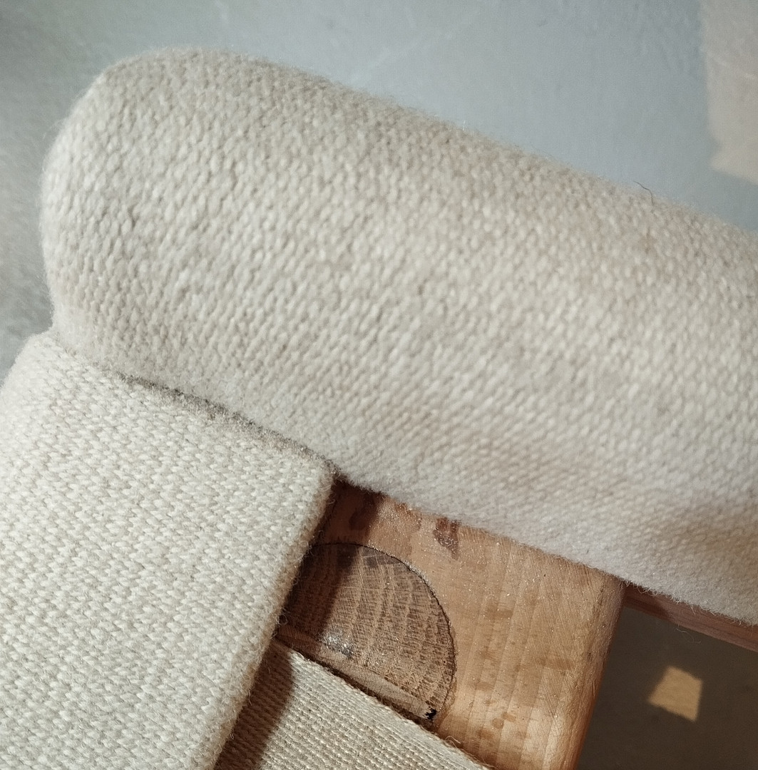 Alters- und Gebrauchsspuren. Polsterung und Bezug wohl später erneut.