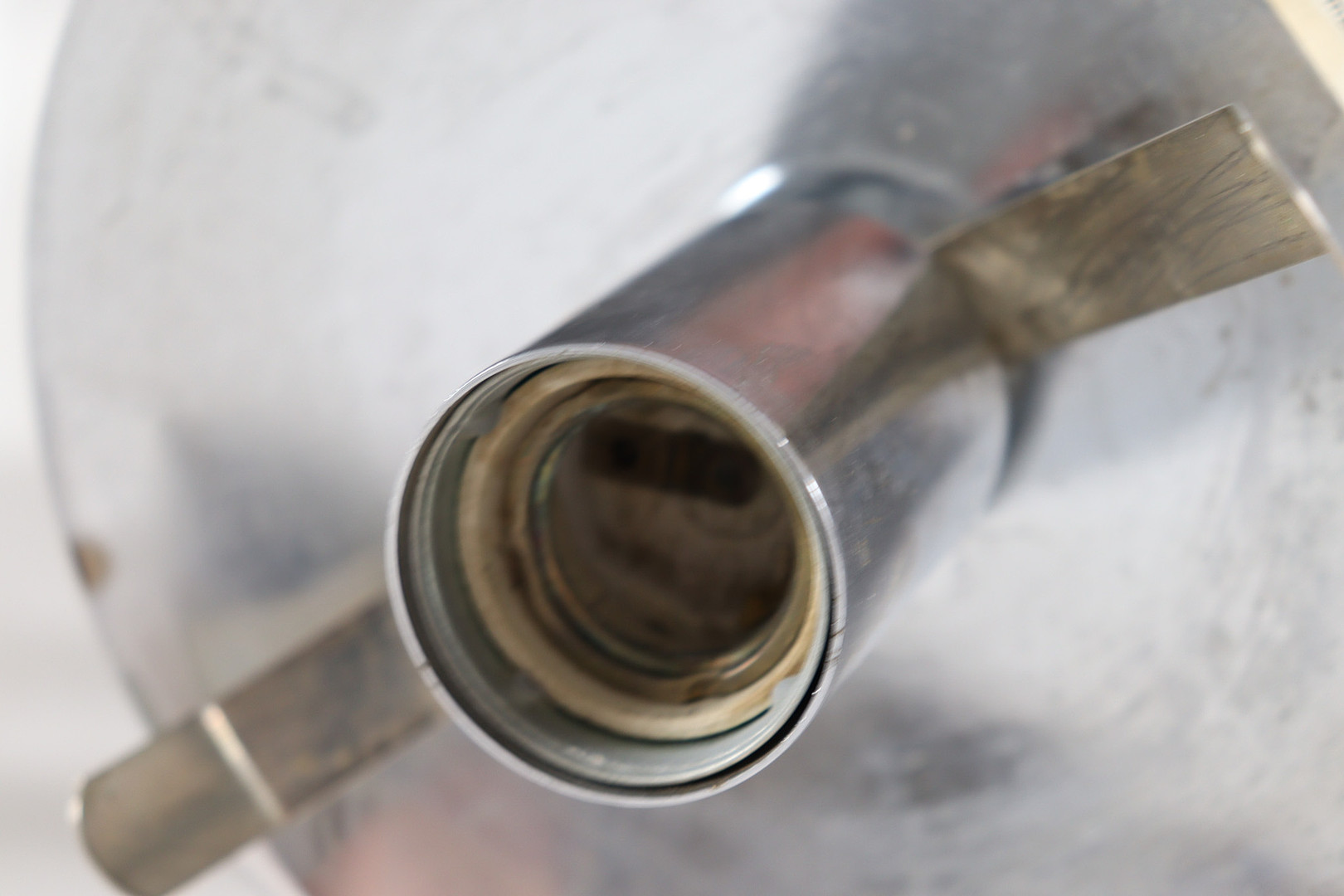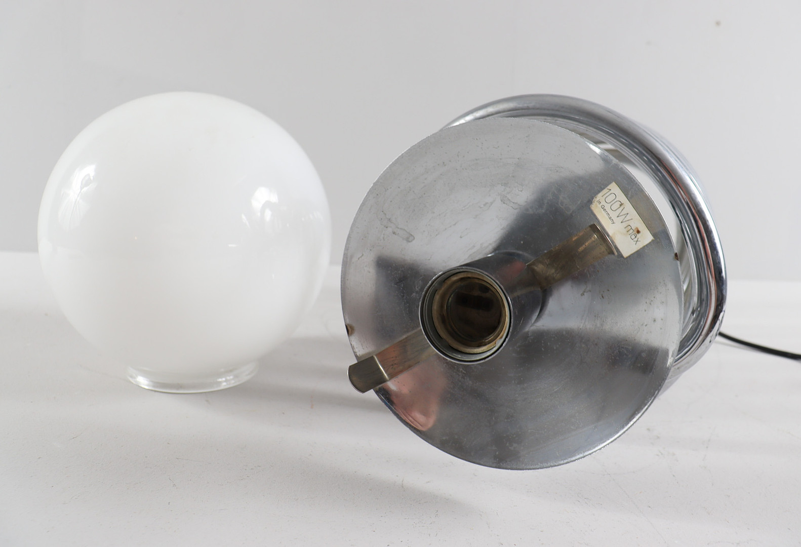 Altersgemäßer Zustand mit Gebrauchsspuren, mit Dimmer/keine originale Glaskugel vorhanden, leichter Flugrost.