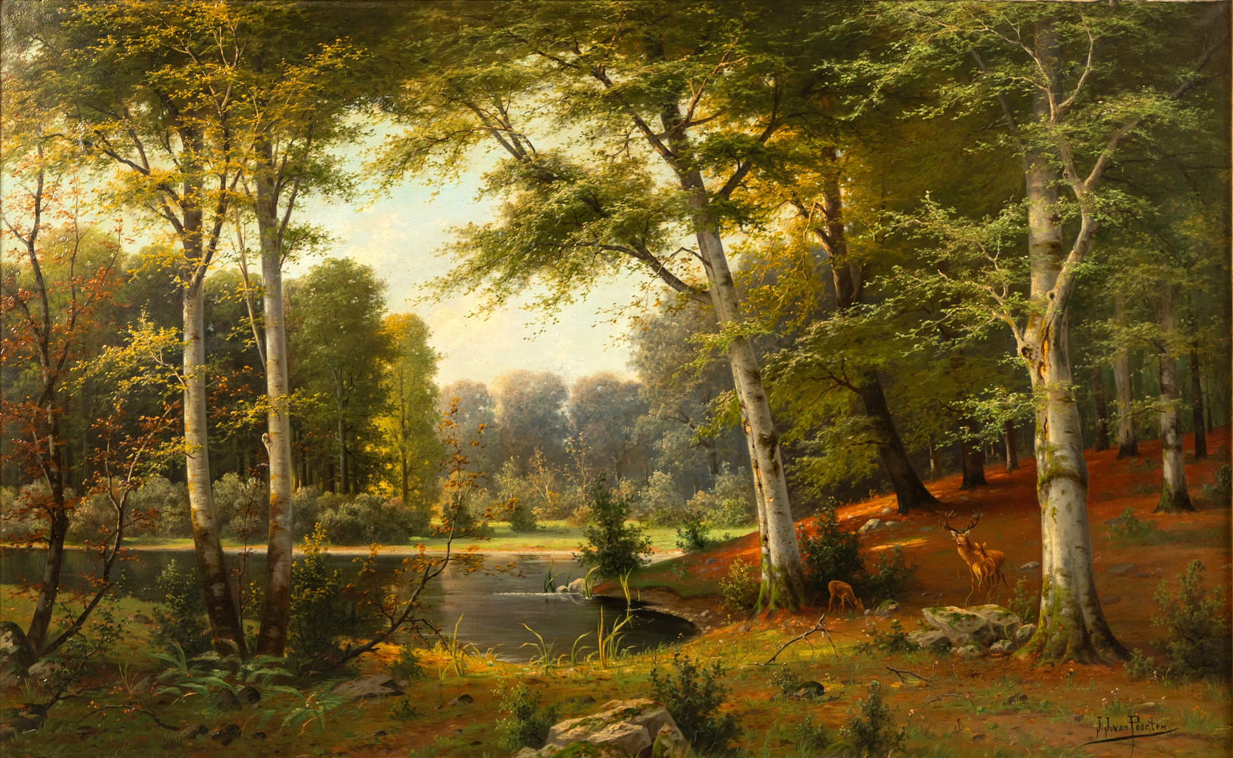 JACOBUS JOHANNES VAN POORTEN (1841-1914). Waldlandschaft mit Rehen.