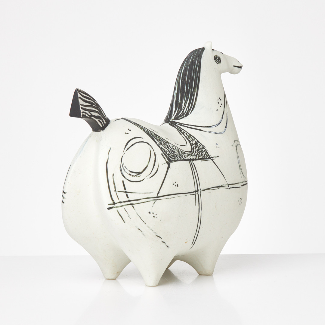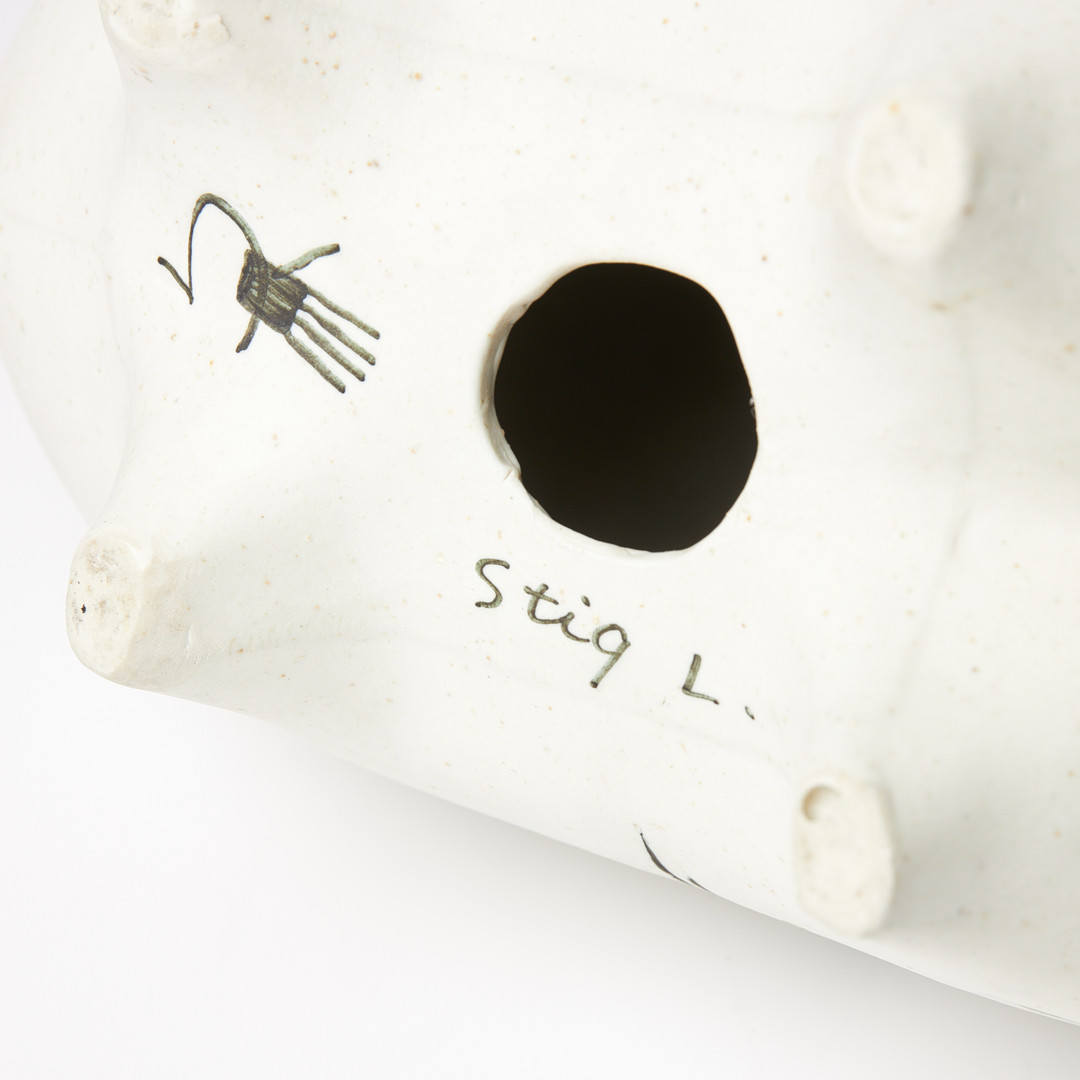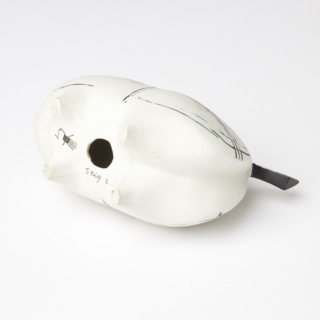 STIG LINDBERG. Skulptur, "Springare", stengods, Gustavsberg, formgiven 1961, ristad och målad dekor i svart, signerad Stig L samt med studiohanden.