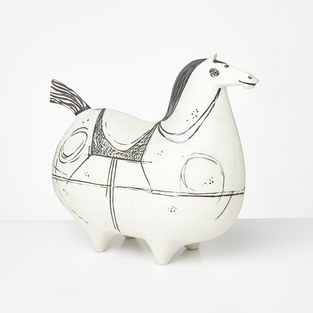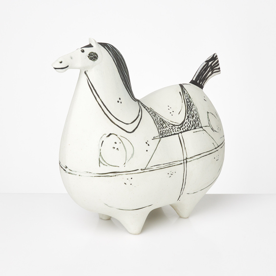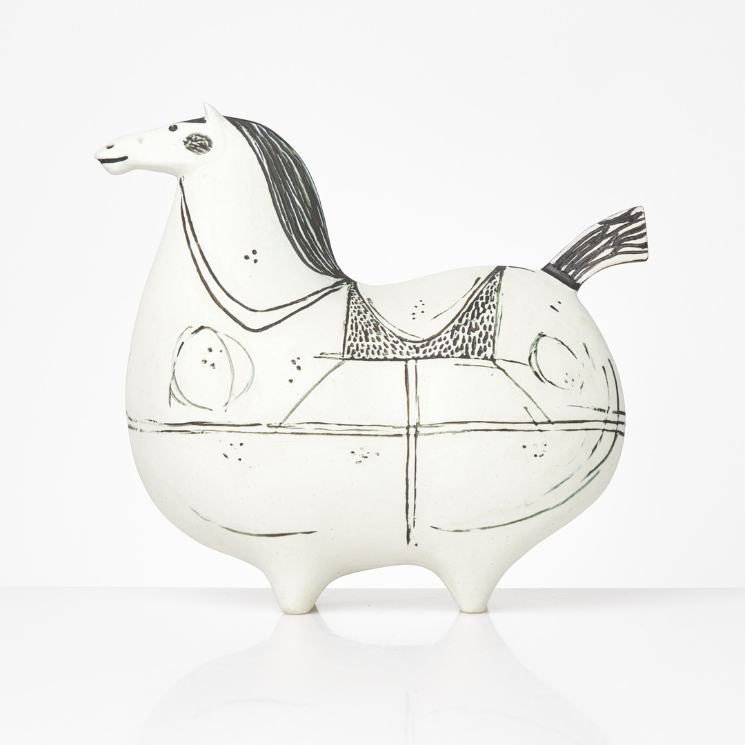 STIG LINDBERG. Skulptur, "Springare", stengods, Gustavsberg, formgiven 1961, ristad och målad dekor i svart, signerad Stig L samt med studiohanden.