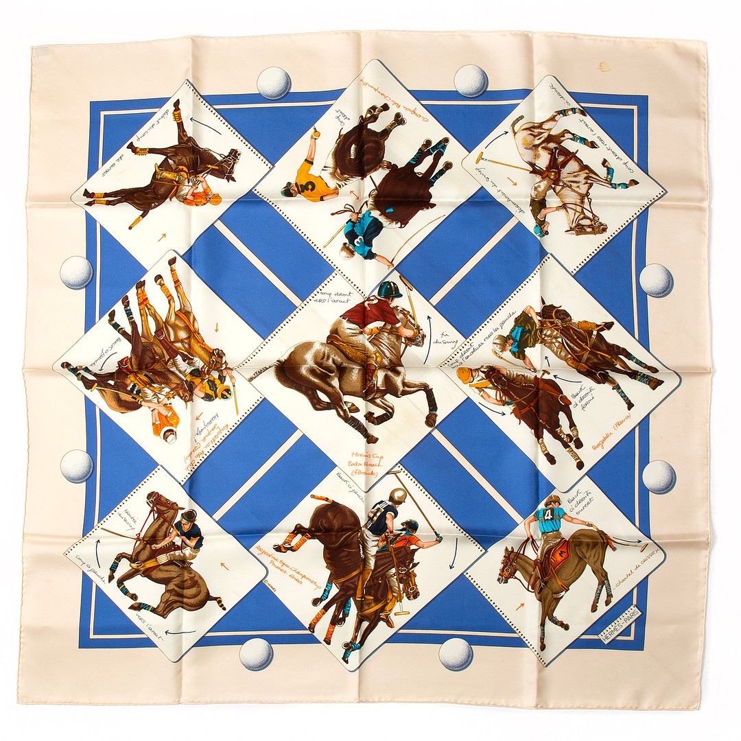 HERMÈS. Scarf, "Le Monde du Polo", siden.