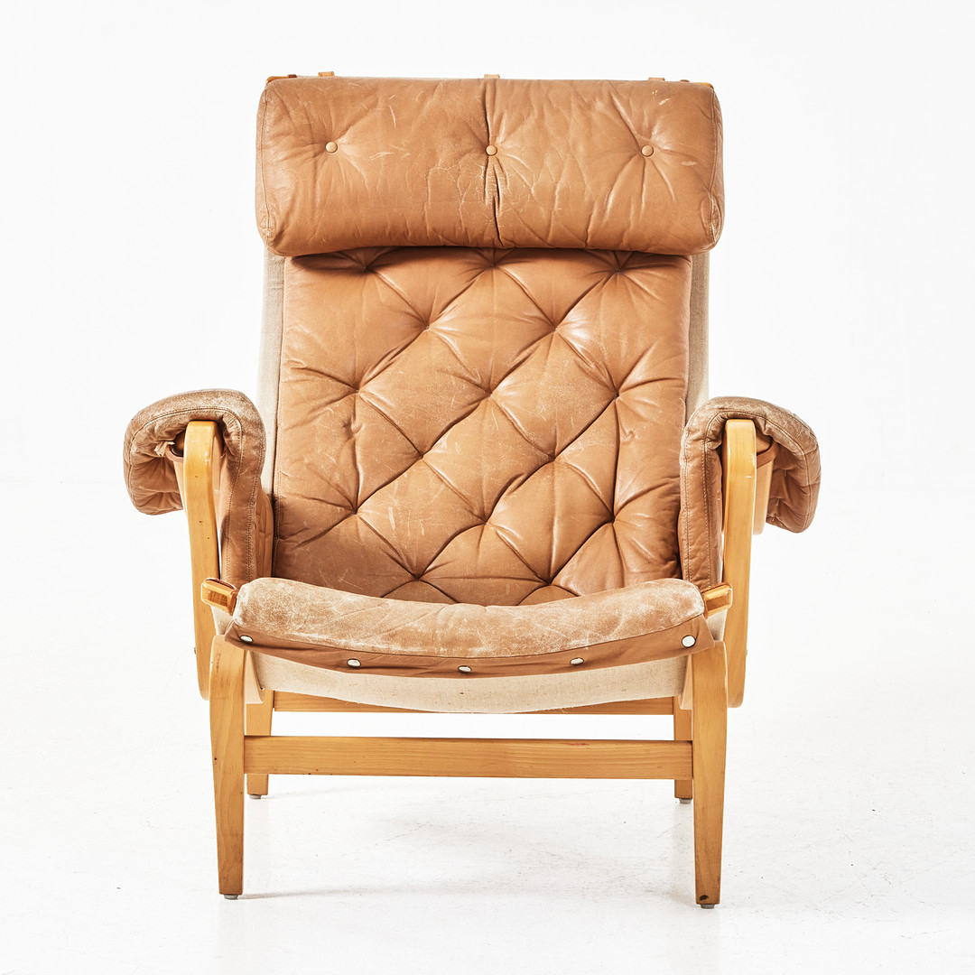 BRUNO MATHSSON. Fåtölj, " Pernilla", för Dux, märkt, läderklädsel.
