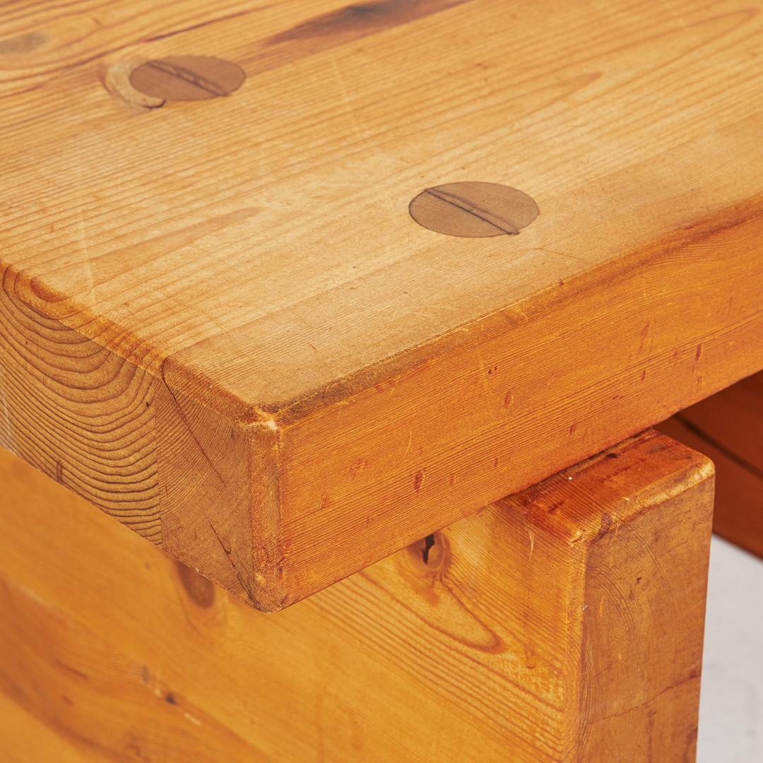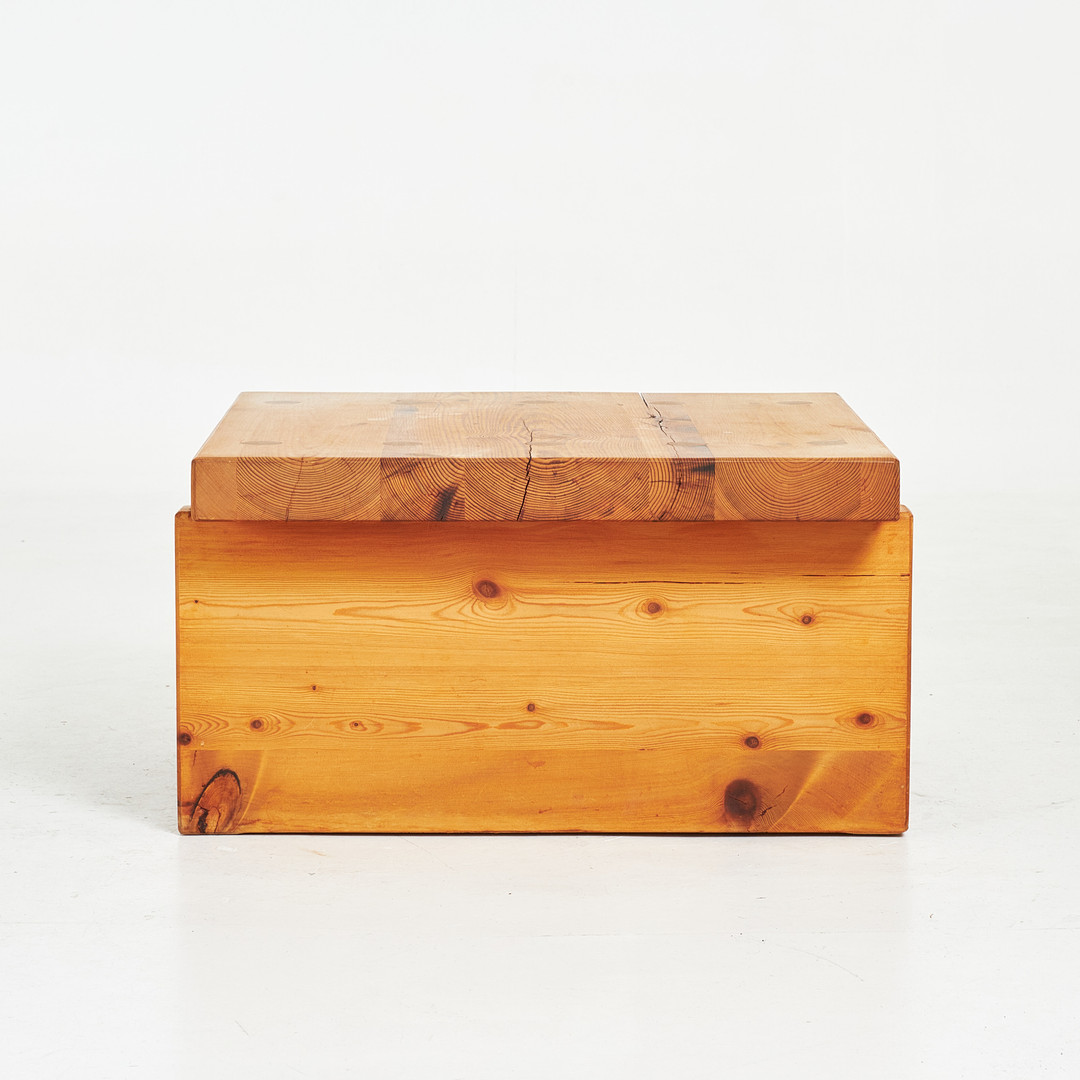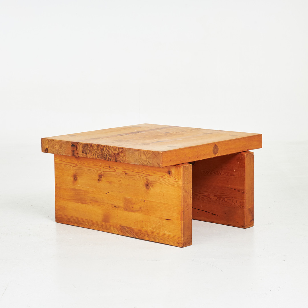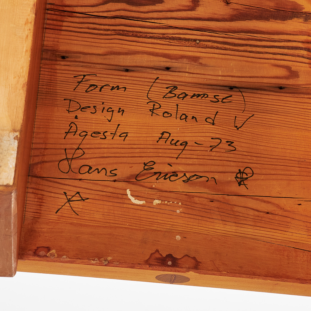 ROLAND WILHELMSSON. Soffbord, "Bamse", furu, Ågesta, signerad och daterad aug - 73.