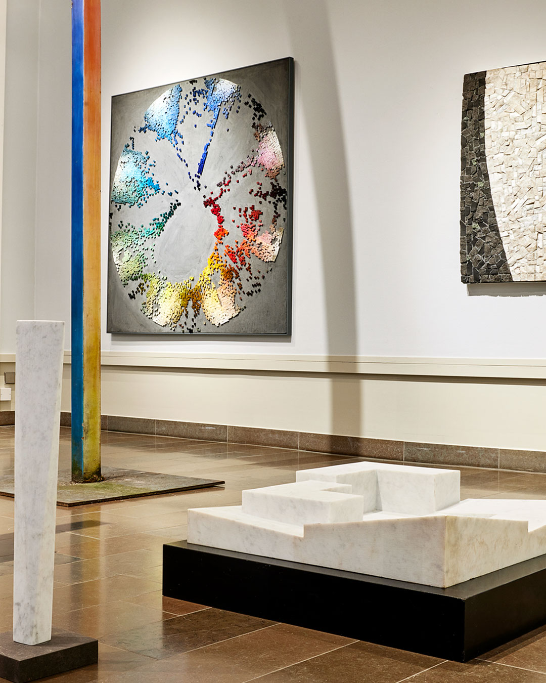 Auktionens presentation är bred och innefattar Marcus robusta verk i stenmosaik, de elegant verken i marmor och de sista årens färg och formstudier i plexiglas och metall.