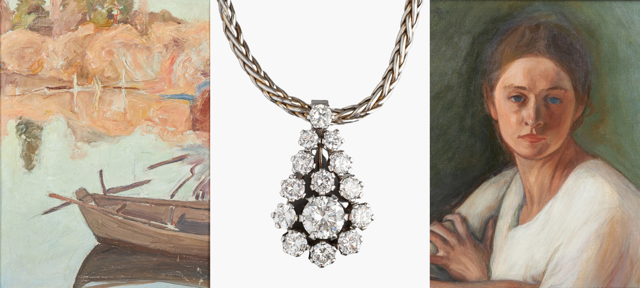 Auktionens höjdpunkt är ett stycke finsk konsthistoria – Ellen Thesleffs porträtt av sin syster från Världsutställningen i Paris år 1900. Det är intimt och finstämt men på samma gång intensivt och närmast hypnotiserande. Ett mästerverk kort sagt. Till auktionens mest betydande alster hör även Akseli Gallen-Kallelas tolkning av Legenden om Promotheus, Magnus Enckells behagligt somriga målning Idyll och en minst sagt spektakulär rysk samovar i silver. Utöver dessa nummer rymmer auktionen även ett par verk av Ilya Efimovich Repin, ett månskenslandskap av Klever Yuli Yulevich, grafik av Marc Chagall och Helene Schjerfbeck, en sträng snedklaffssekretär i rysk directoire och mycket mycket mer, bland annat en samling fickur i guld.