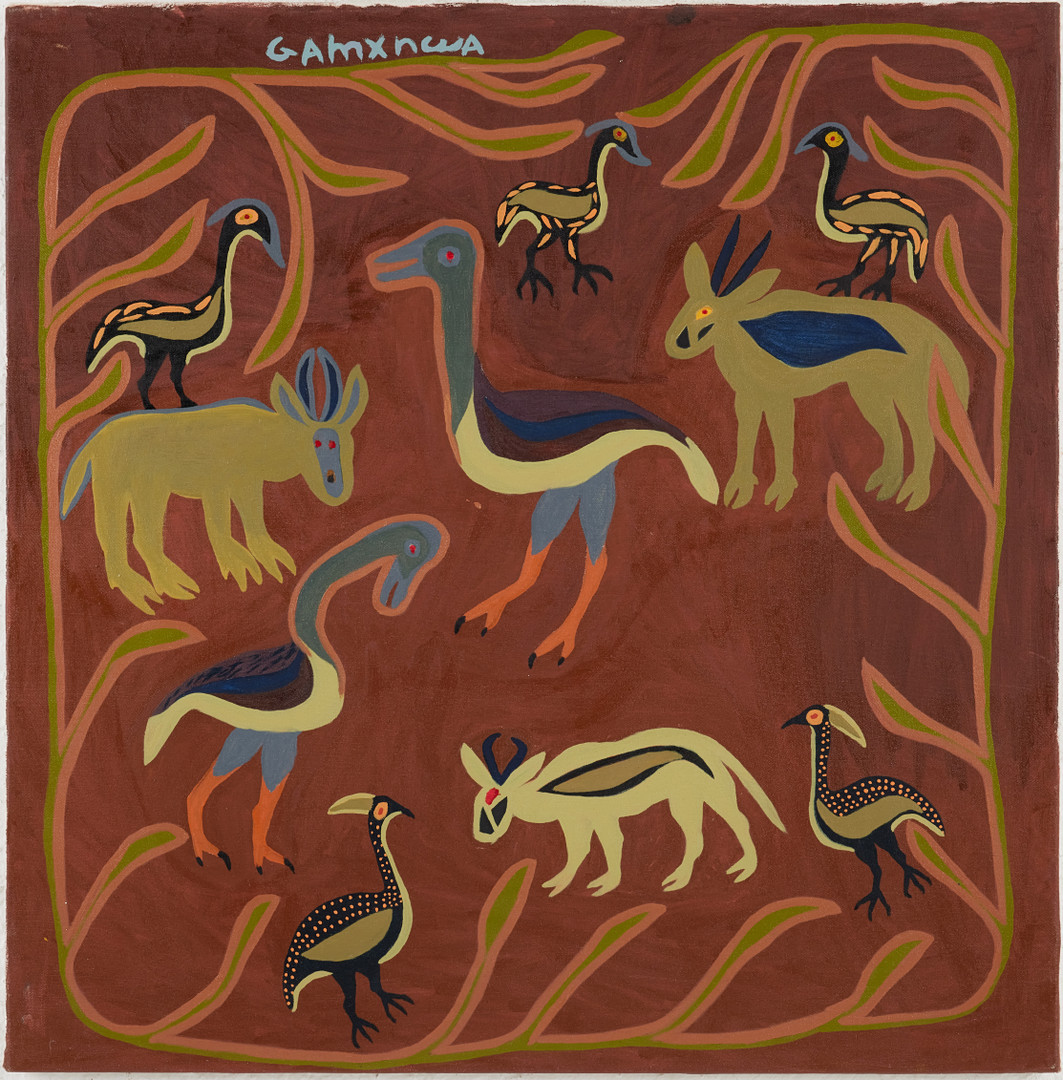 Samlingen omfattar verk av bland annat Thamae Setshogo som skapar abstrakta och symboliska verk inspirerade av traditionella San-berättelser. Även verk av den internationellt kända Coex’ae Qgam (även kallad Dada) är representerad liksom verk av Qwaa vars motivvärld domineras av djur men man kan även se kopplingar till tidig San-konst. Varmt välkommen att utforska denna rika och spännande bildvärld!
