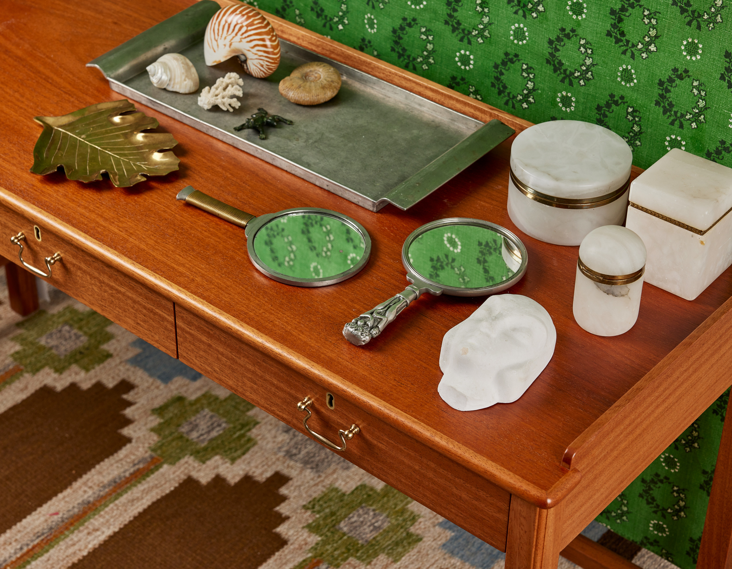 I samband med auktionen har vi bjudit in Gustav Broström – även känd som avsändaren till instagramkontot Gustavsrum – att sälja utvalda föremål ur sin privata samling. Han passar även på att styla delar av visningen på Nybrogatan 32. Gustav Broström är en minst sagt engagerad samlare som lyckats hugga ut en egen nisch i sociala medier, där han skapar inspirerande innehåll och vackra stilleben utan att tappa fokus på återbrukets hållbara värden.