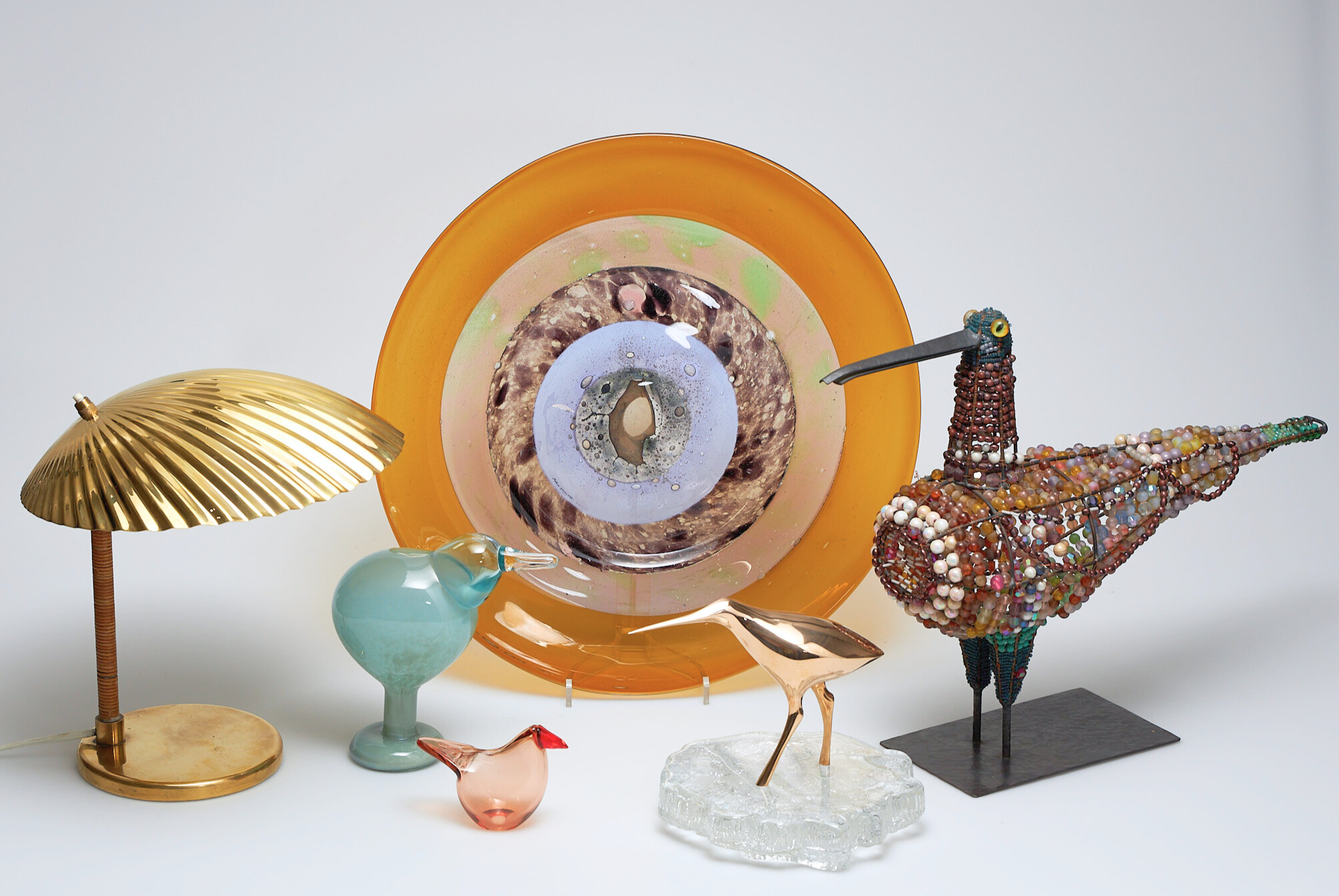 Vidare är designutbudet traditionsenligt starkt. Alvar Aalto är givetvis representerad av ett flertal modeller och ser man sig om efter något verkligt udda kanske hans medicinskåp i björk är precis vad man letar efter. Missa heller inte Birger Kaipiainens smått gudomliga pärlfågel, hans spov att hänga på väggen eller det mustiga keramikfatet av Pablo Picasso. Och vad vore en finsk kvalitetsauktion utan exklusiva armaturer av Paavo Tynell eller glas av Kaj Franck? Här finns naturligtvis både och. Utöver ovan nämnda pärlor rymmer auktionen även ett krispigt högklassigt stilleben av Tove Jansson, en sportstugesoffa av Axel Einar Hjorth och två Ägget-fåtöljer i svart skinn av Arne Jacobsen. Samt mycket mycket mer.